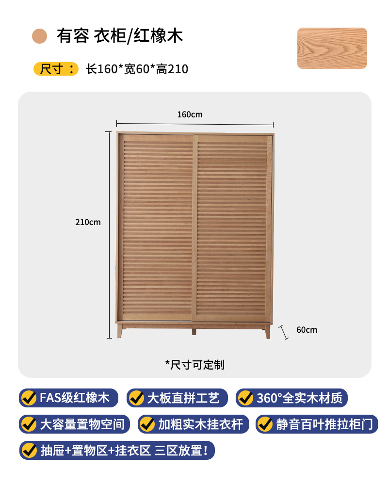 • 1.6M 셔터 미닫이문 옷장 | 레드오크 + 도어 2개 + 조립