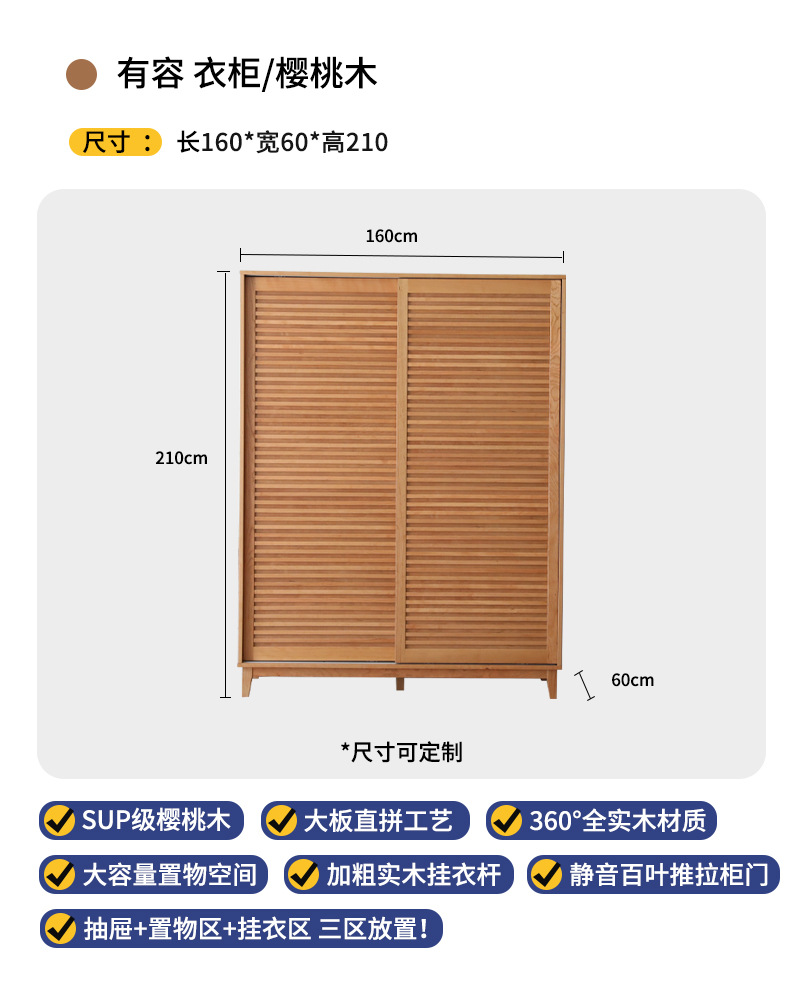 • 1.6M 셔터 미닫이문 옷장 | 벚나무 + 문 2개 + 조립