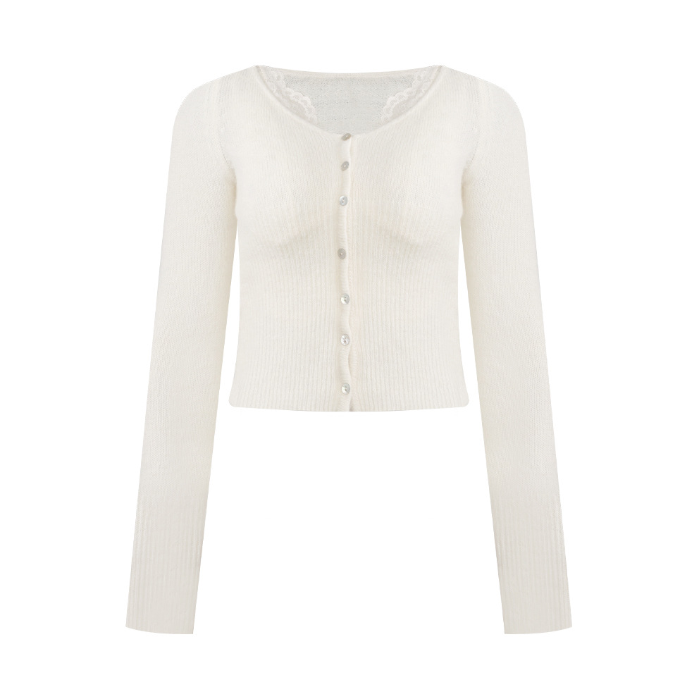 분위기 패브릭 페이크 투피스 레이스 스티칭 니트 탑 가을 패션 소프트 왁스 알파카 V 넥 니트 스웨터스토어 가기