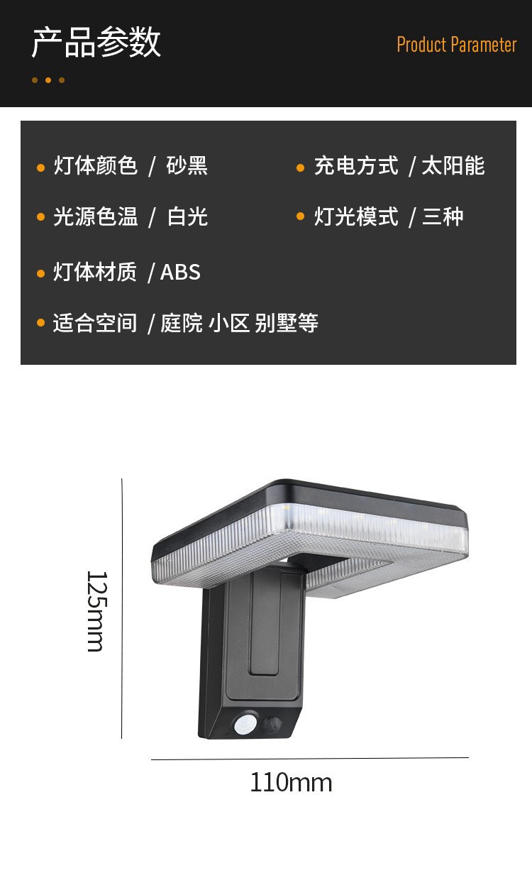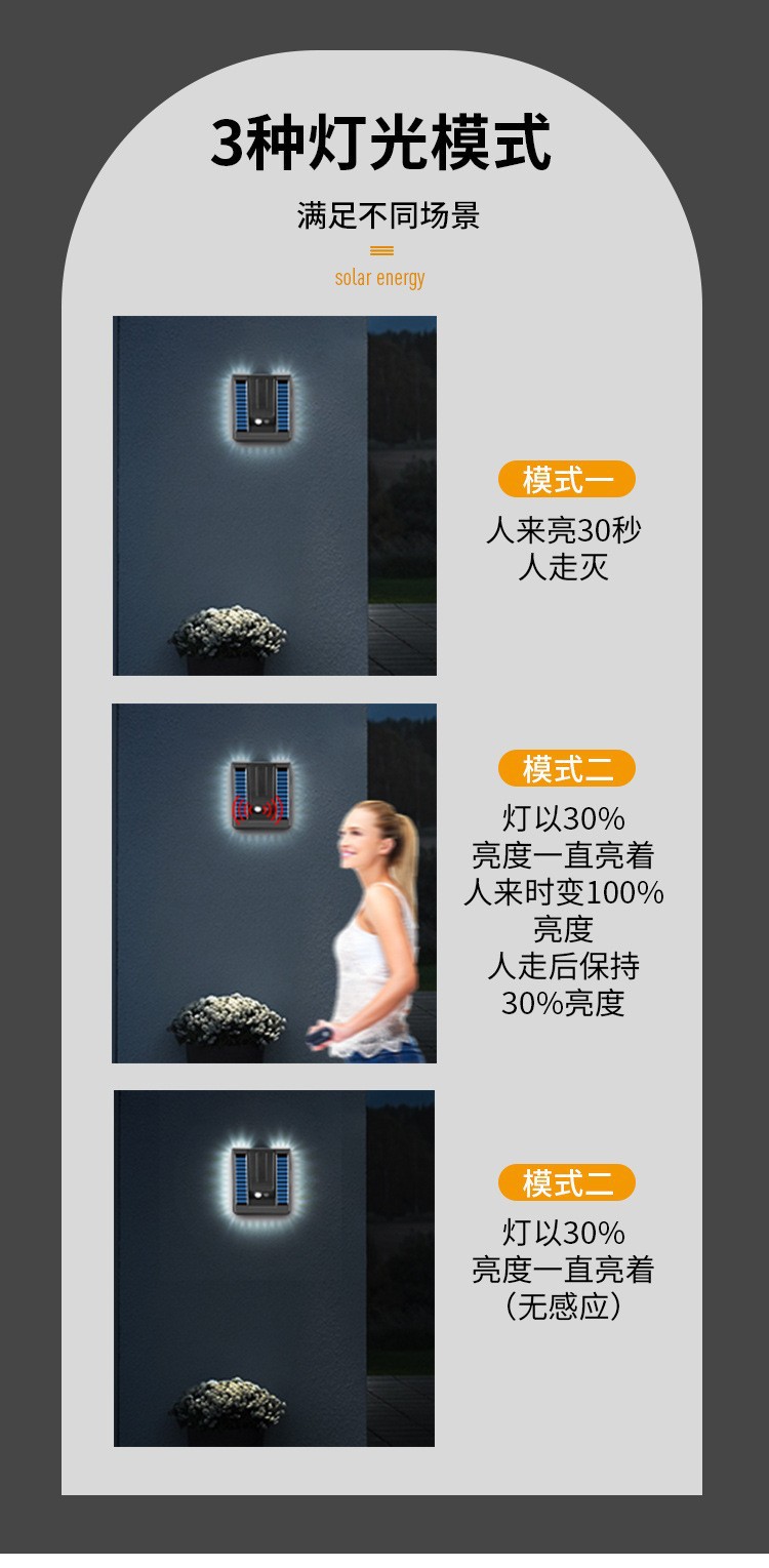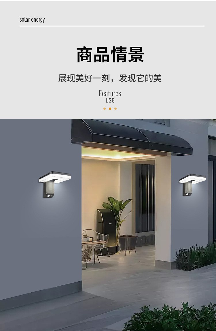 태양광 센서 벽등, 실외 방수 정원등, U자형 LED 조명 공학, 농촌 지역에 적합한 지능형 센서스토어 가기