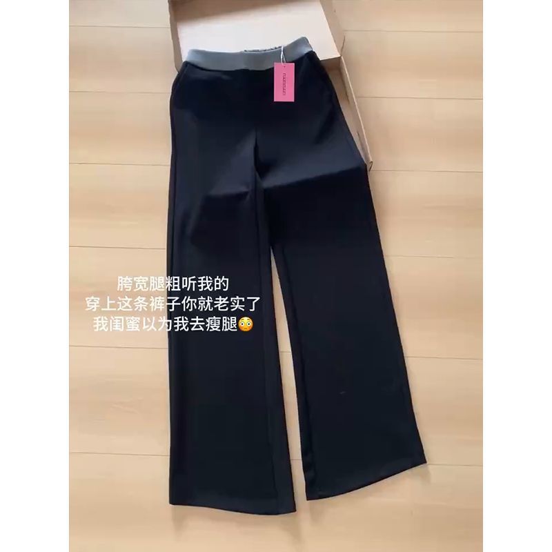 검은 바느질 대조 캐주얼 스포츠 바지 2024 가을과 겨울 새로운 높은 허리 살은 느슨한 슬리밍 넓은 바지스토어 가기