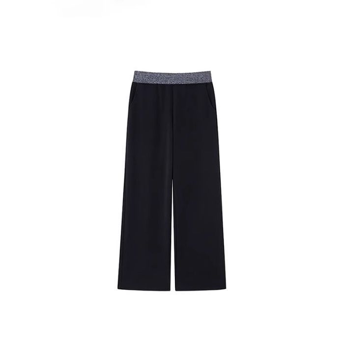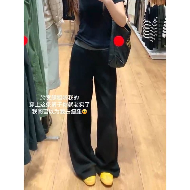 검은 바느질 대조 캐주얼 스포츠 바지 2024 가을과 겨울 새로운 높은 허리 살은 느슨한 슬리밍 넓은 바지