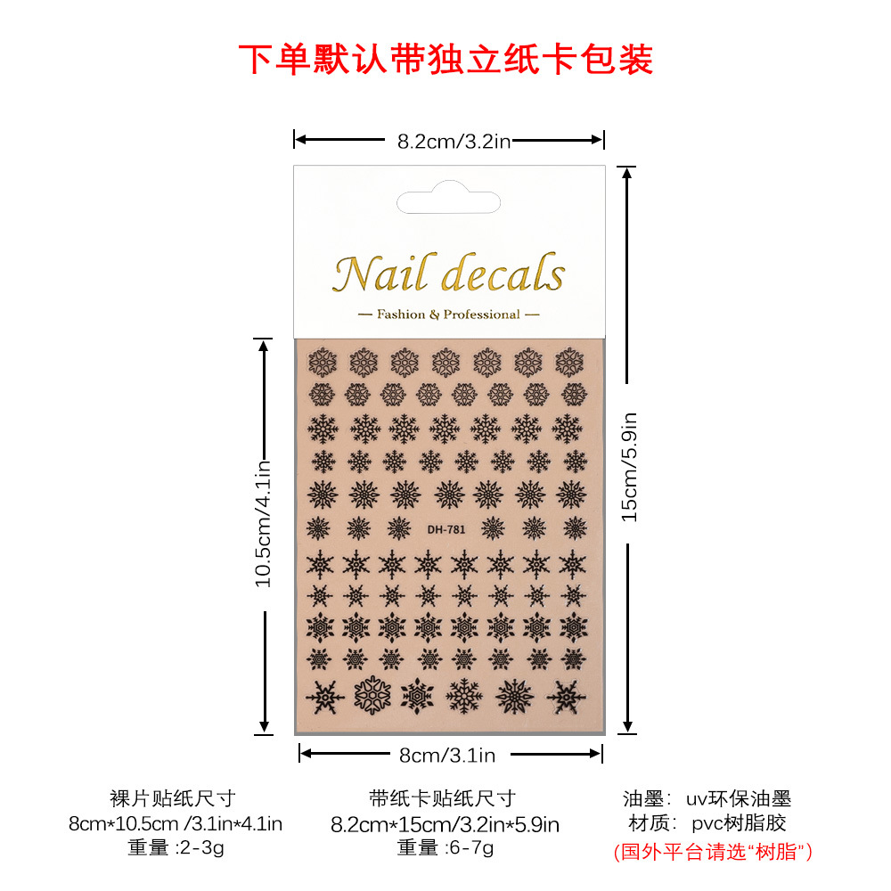 Redanco 새로운 3D 평면 인기 크리스마스 시리즈 눈송이 네일 스티커 DH-780