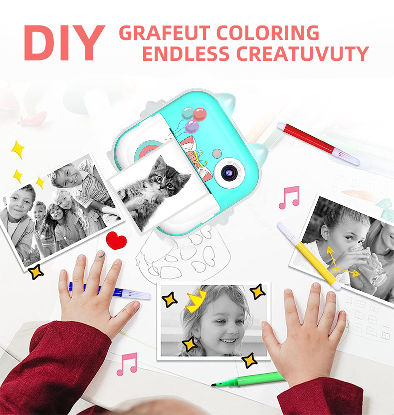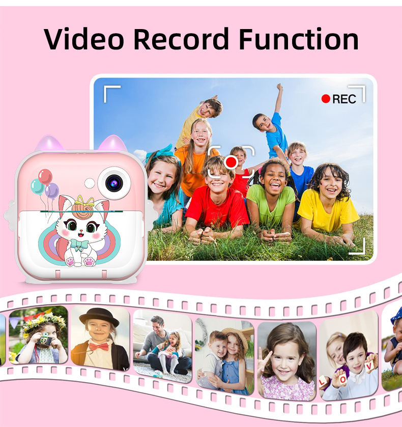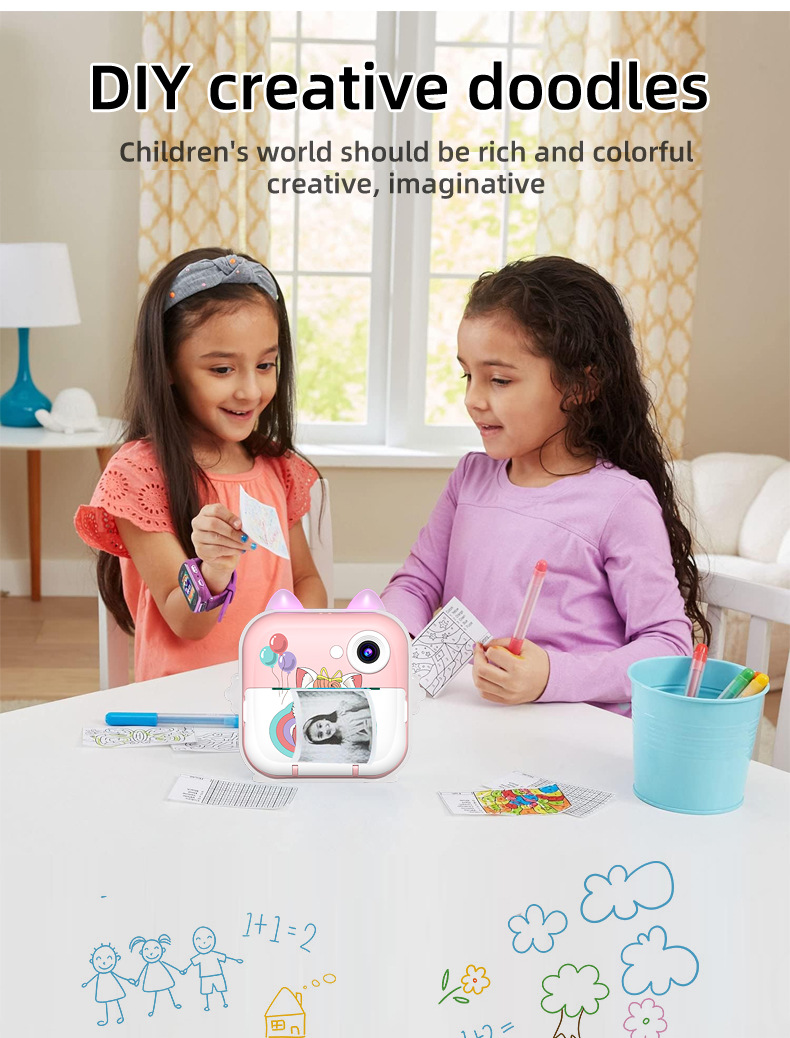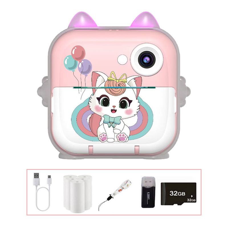 새로운 스타일의 새로운 어린이 디지털 카메라 클래퍼 귀여운 무지개 고양이 미니 사진 인쇄 디지털 hd 카메라