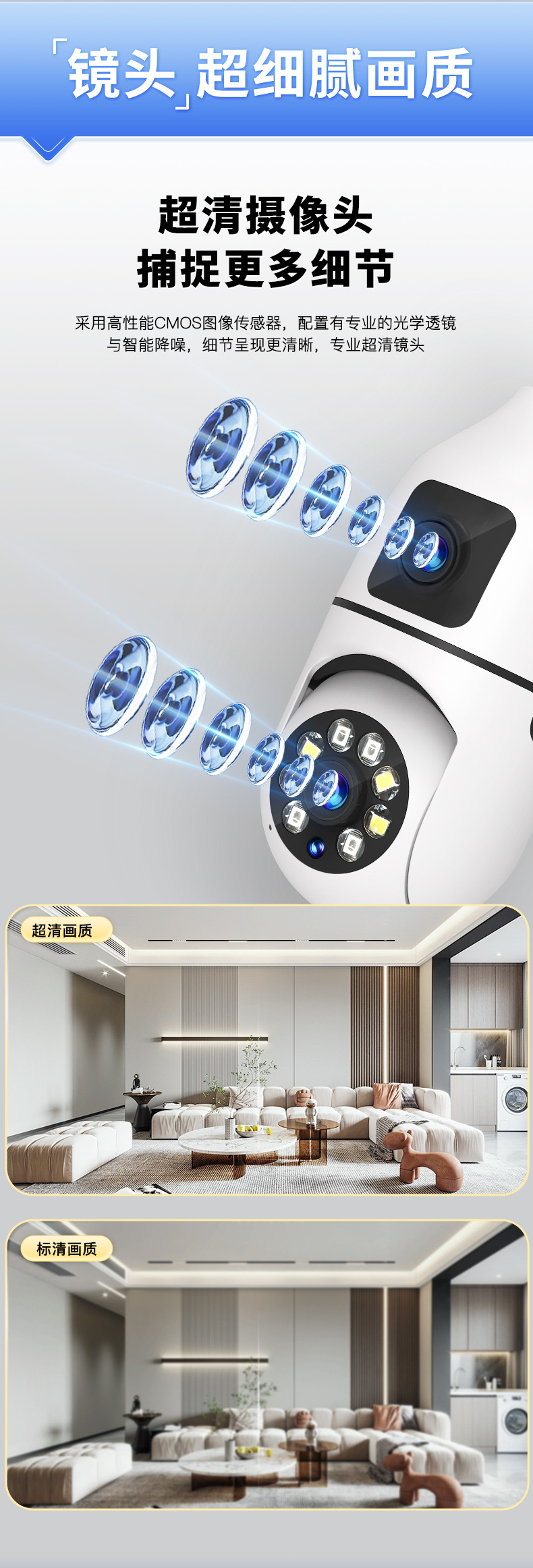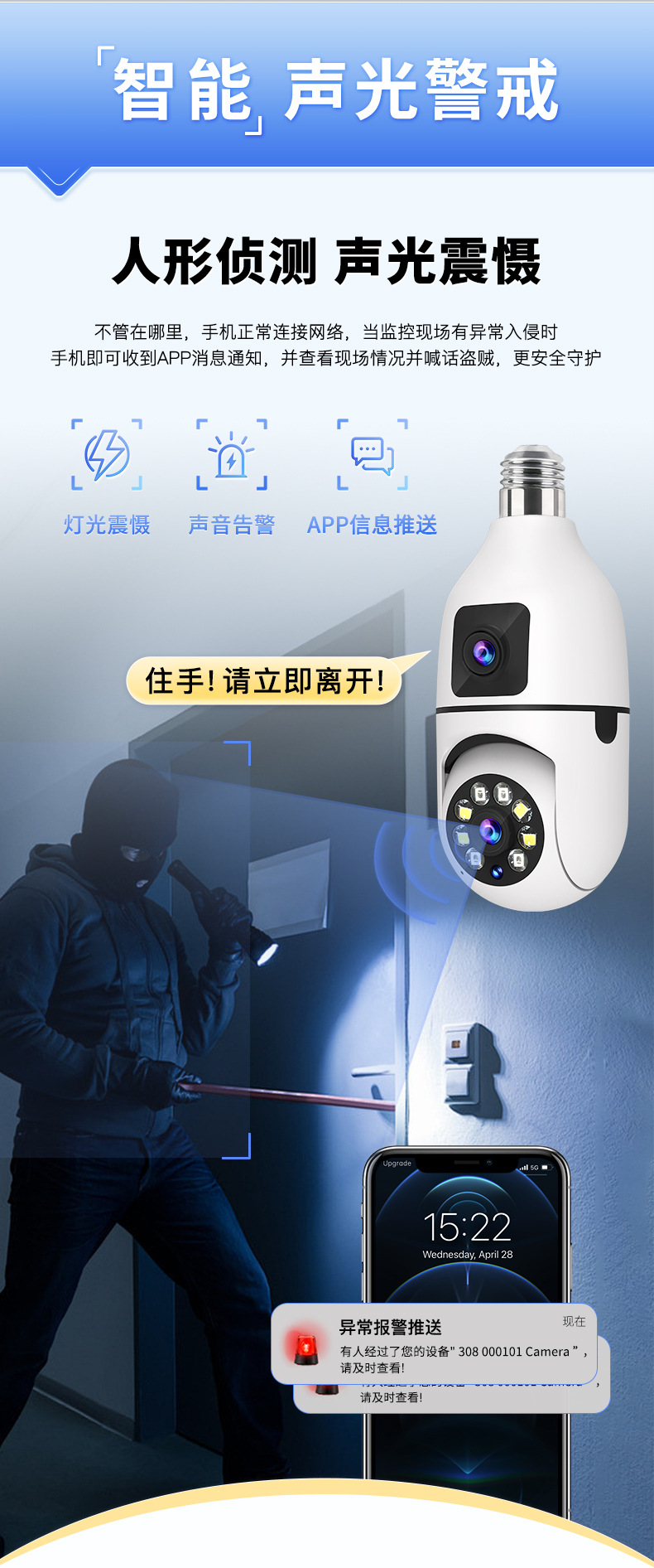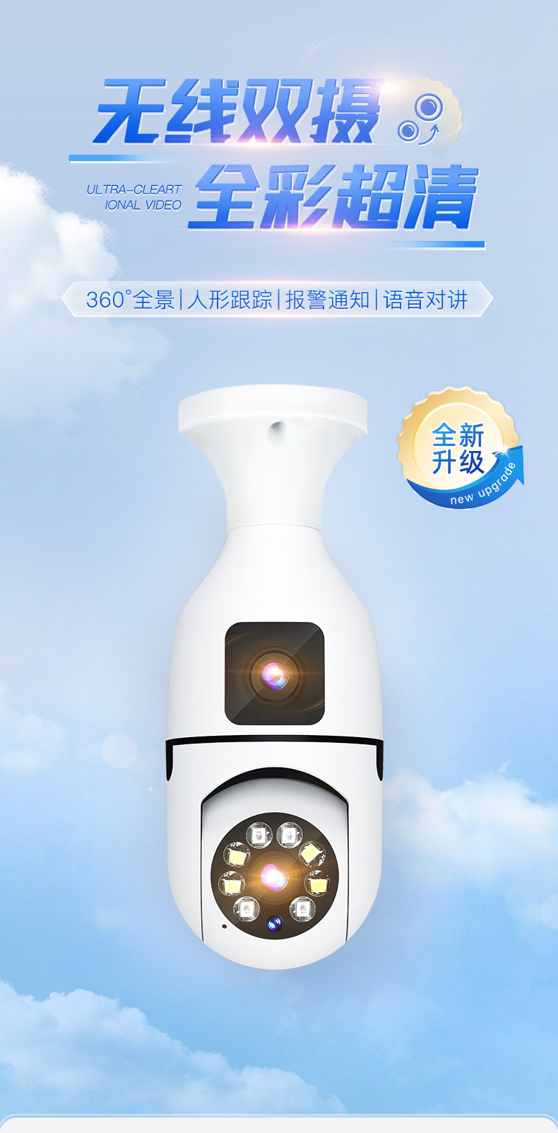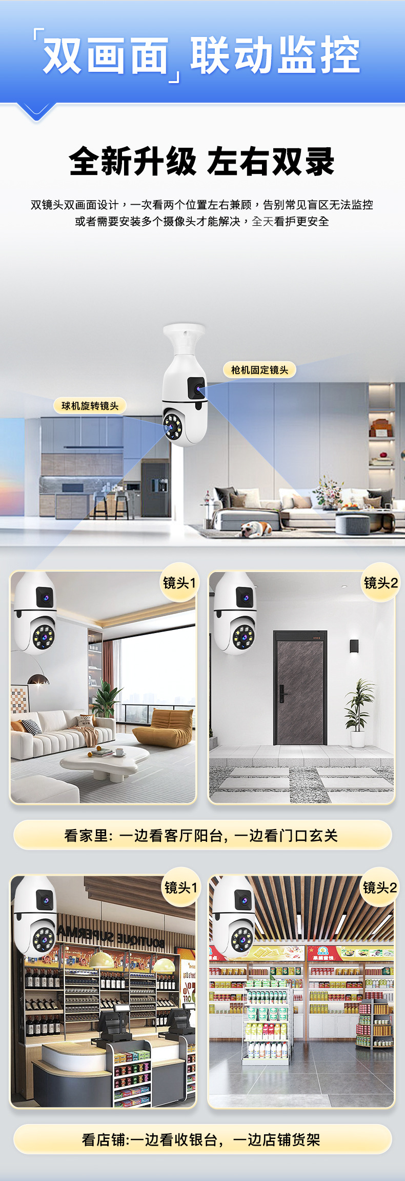 전구 양안 카메라 1080p HD 실내 및 실외 보안 모니터 360 도 듀얼 라이트 회전 카메라스토어 가기