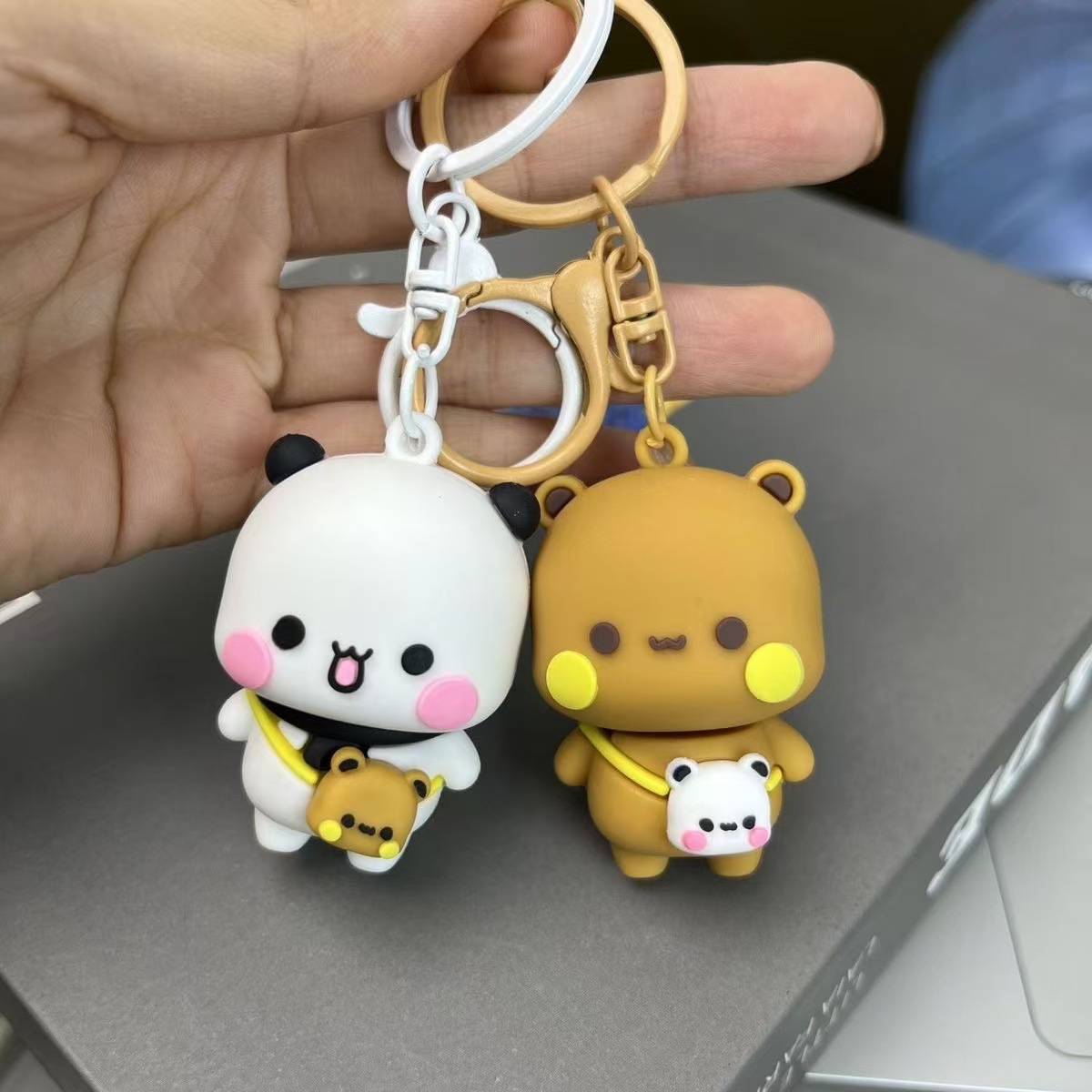 새로운 커플 팬더 하나 또는 두 개의 천 키 체인 학교 가방 펜던트 귀여운 주변 데스크탑 높은 색상 가치 장식품스토어 가기