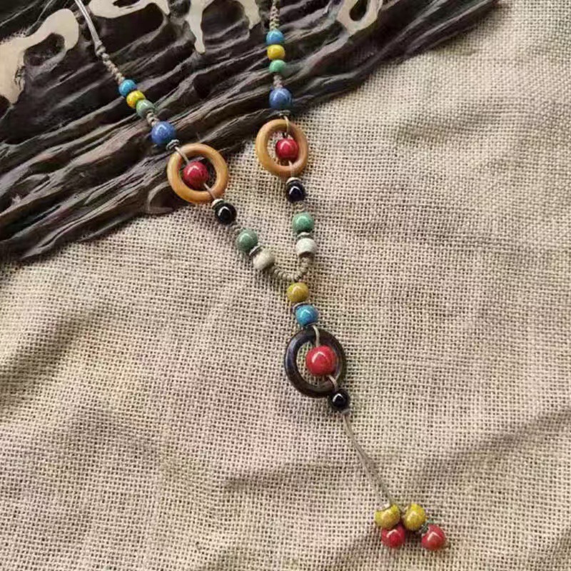 새로운 중국 스타일 보헤미안 스타일 세라믹 목걸이 여성의 외국인 민족 스타일 레트로 긴 가을과 겨울 모직 체인 액세서리스토어 가기