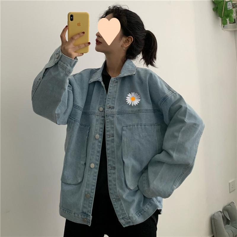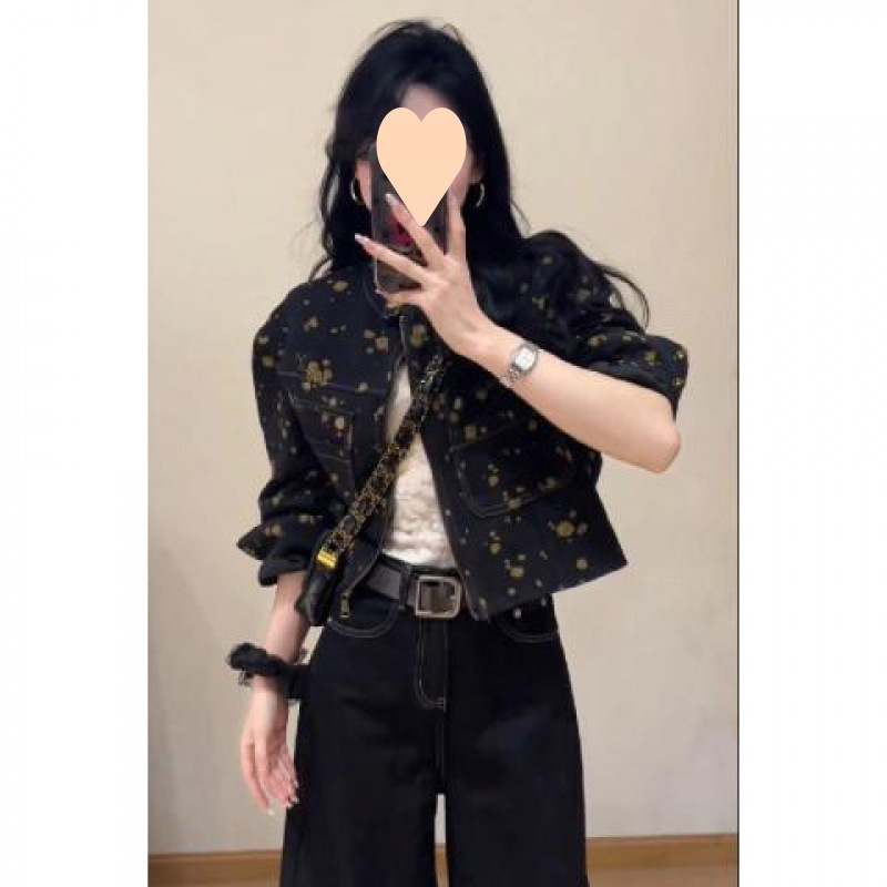빈티지 컬러 인쇄 데님 재킷 여성의 2024 가을 새로운 디자인 센스 틈새 짧은 우아한 캐주얼 자켓스토어 가기
