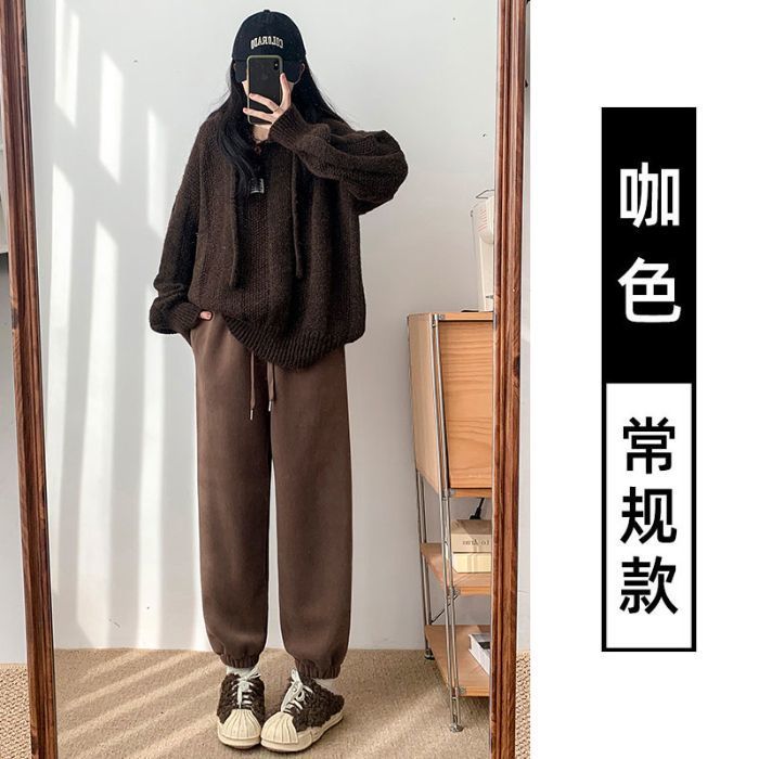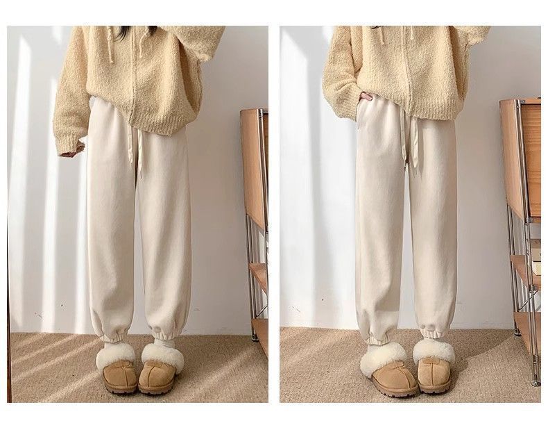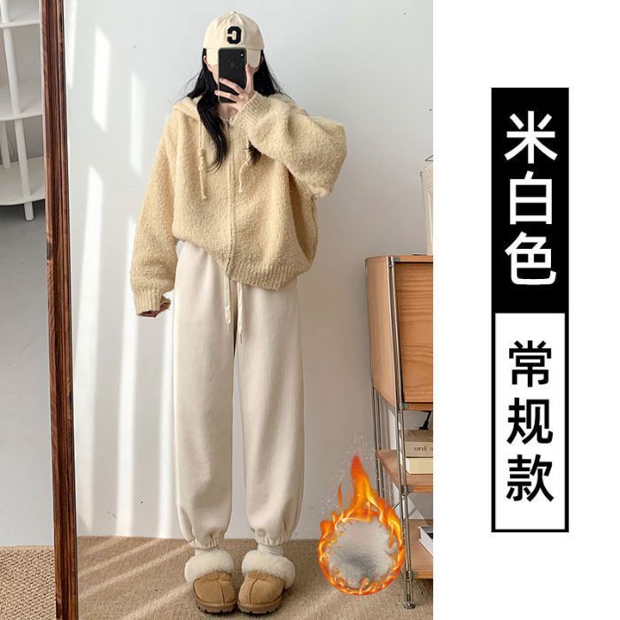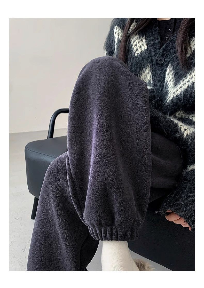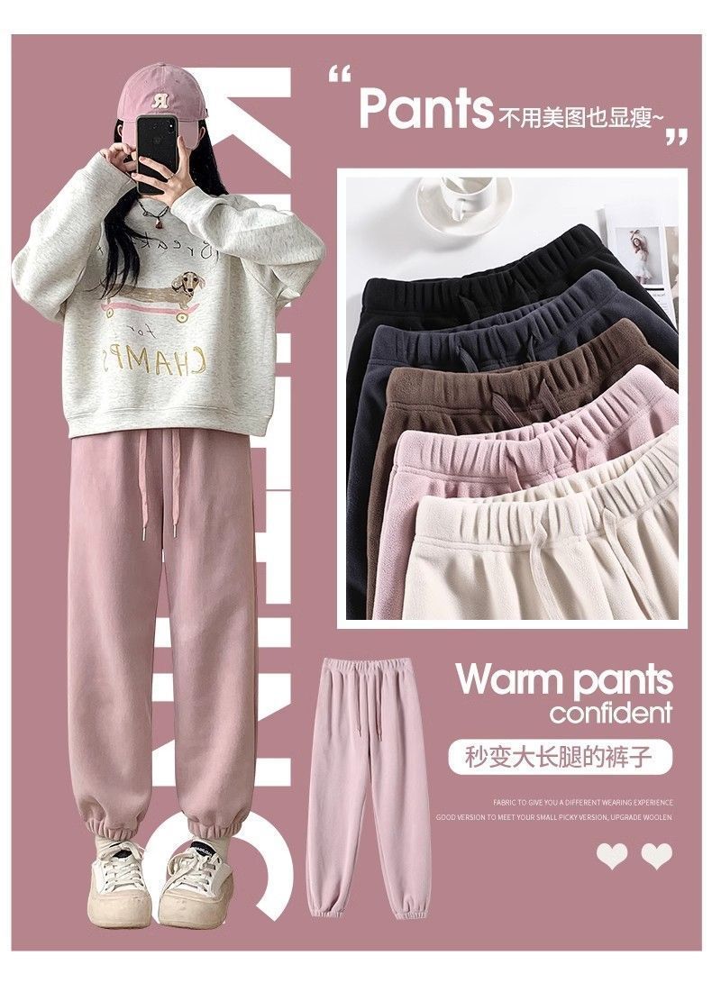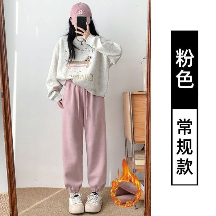 핑크 따뜻한 바지 여성의 가을과 겨울 2024 새로운 기모 두꺼운 따뜻한면 바지 느슨한 발가락 스포츠 바지스토어 가기