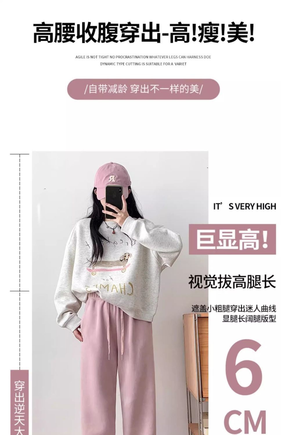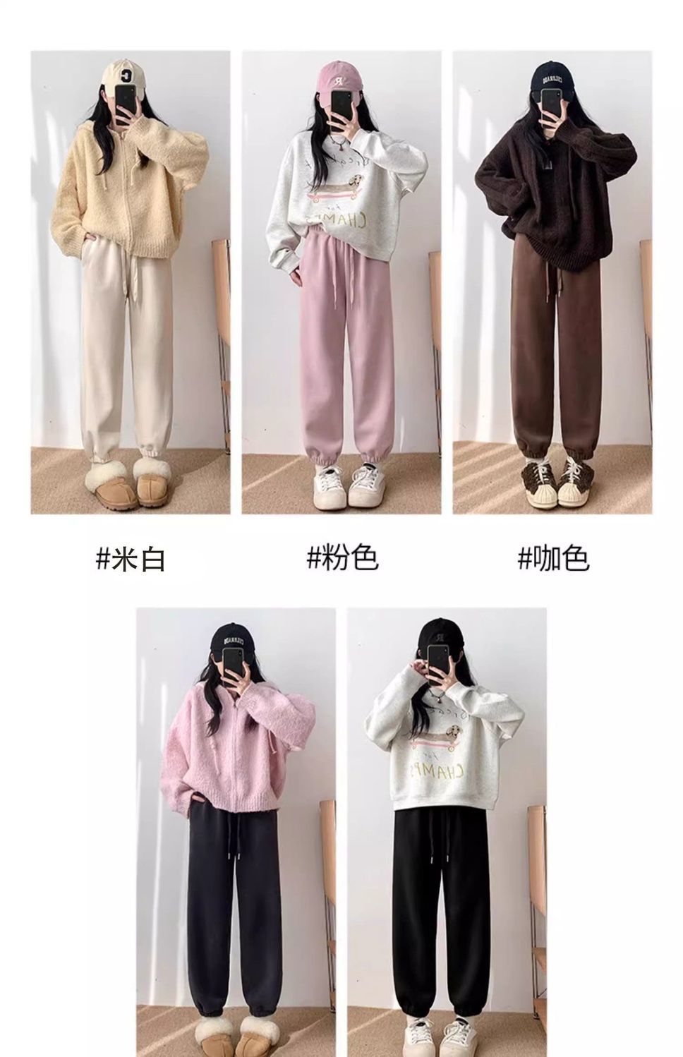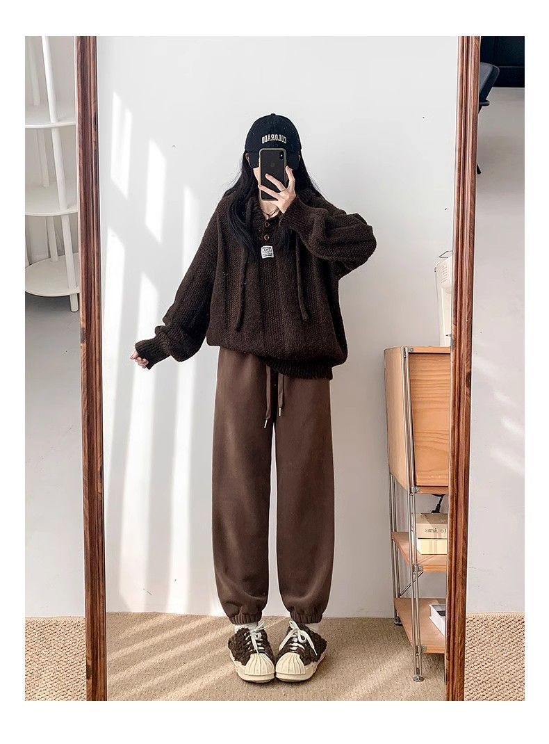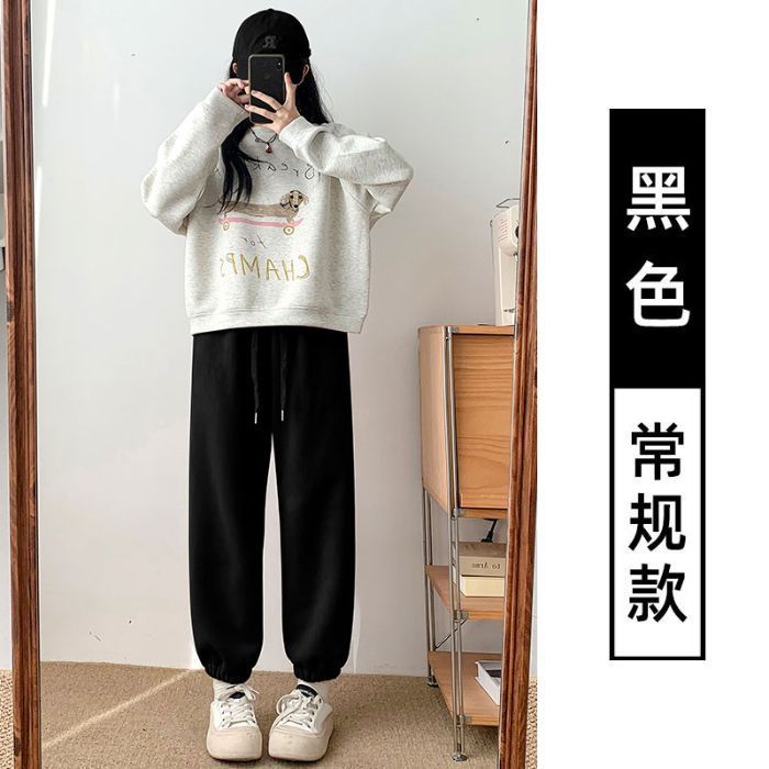 핑크 따뜻한 바지 여성의 가을과 겨울 2024 새로운 기모 두꺼운 따뜻한면 바지 느슨한 발가락 스포츠 바지스토어 가기