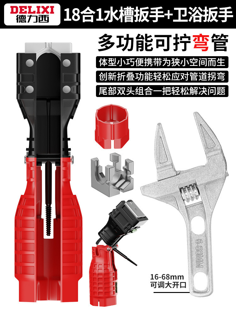 Delixi 싱크 렌치 가정용 욕실 렌치 8 대 1 다기능 렌치 수도꼭지 유니버설 설치 도구스토어 가기