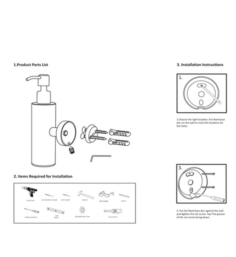 아마존 국경 독점 스테인레스 스틸 손 소독제 병 비누 디스펜서 샤워 젤 교수형 병 비 천공 벽 장착 병