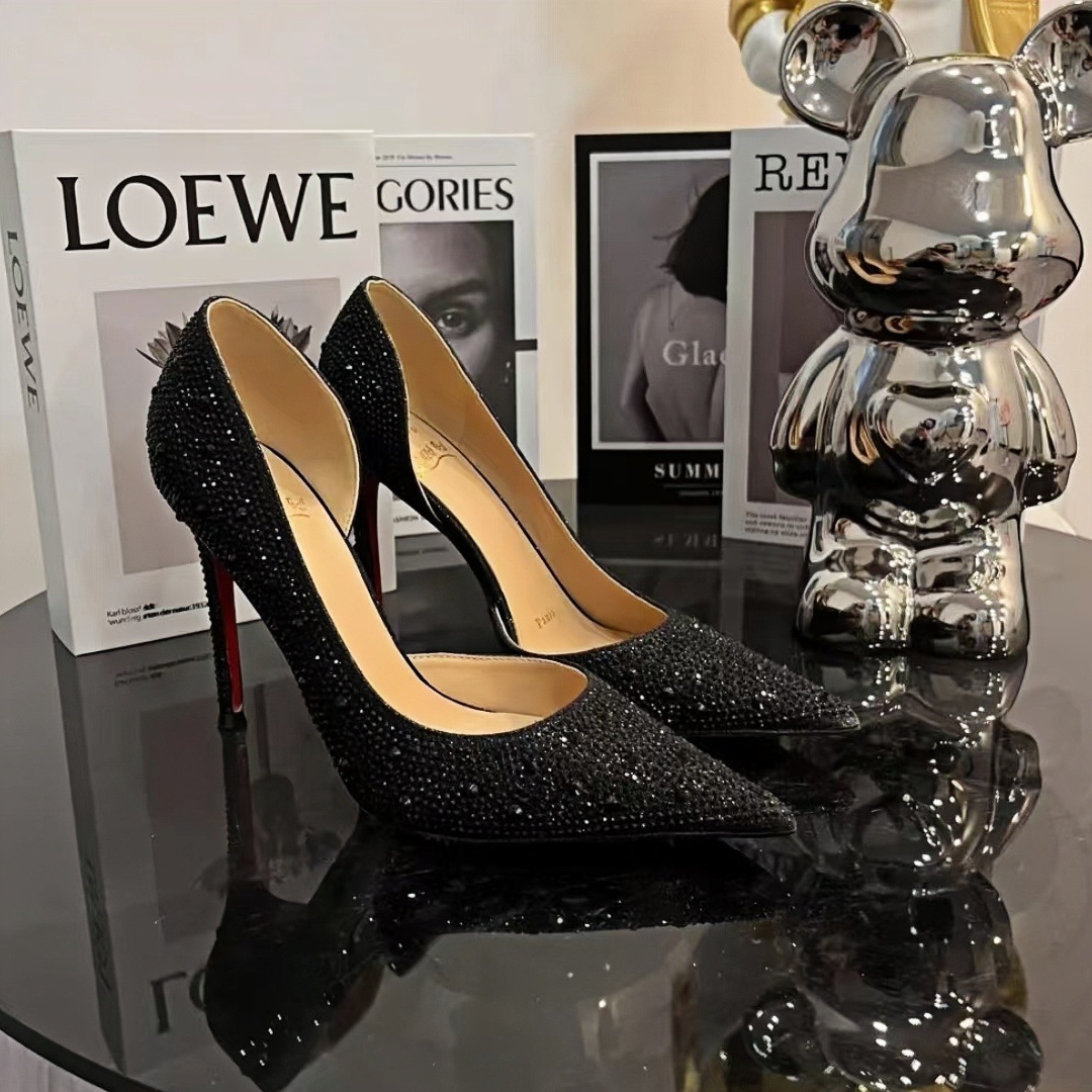 도매 봄과 가을과 겨울 새로운 패션 조커 라인 스톤 신발 빨간색 하단 빈 스틸레토 힐 기질 여성 신발 하이힐