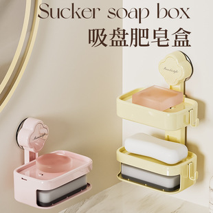 塑料吸盘肥皂盒卫生间壁挂香皂盒置物架免打孔带海绵肥皂沥水架 RMB:9.90