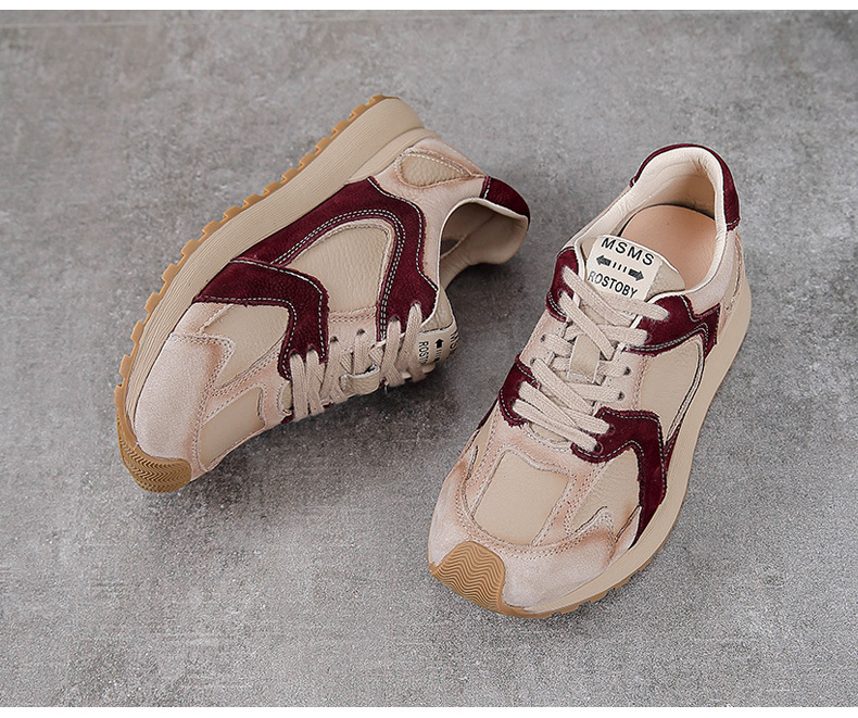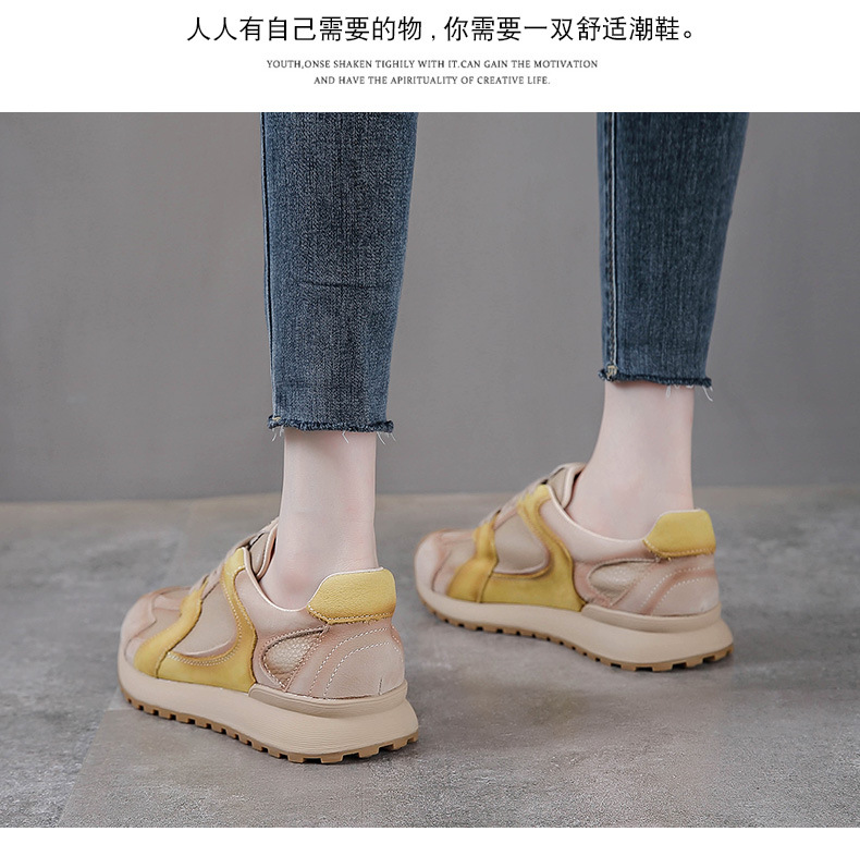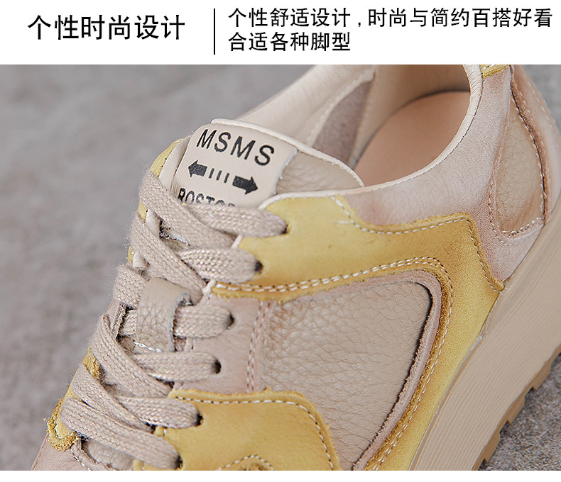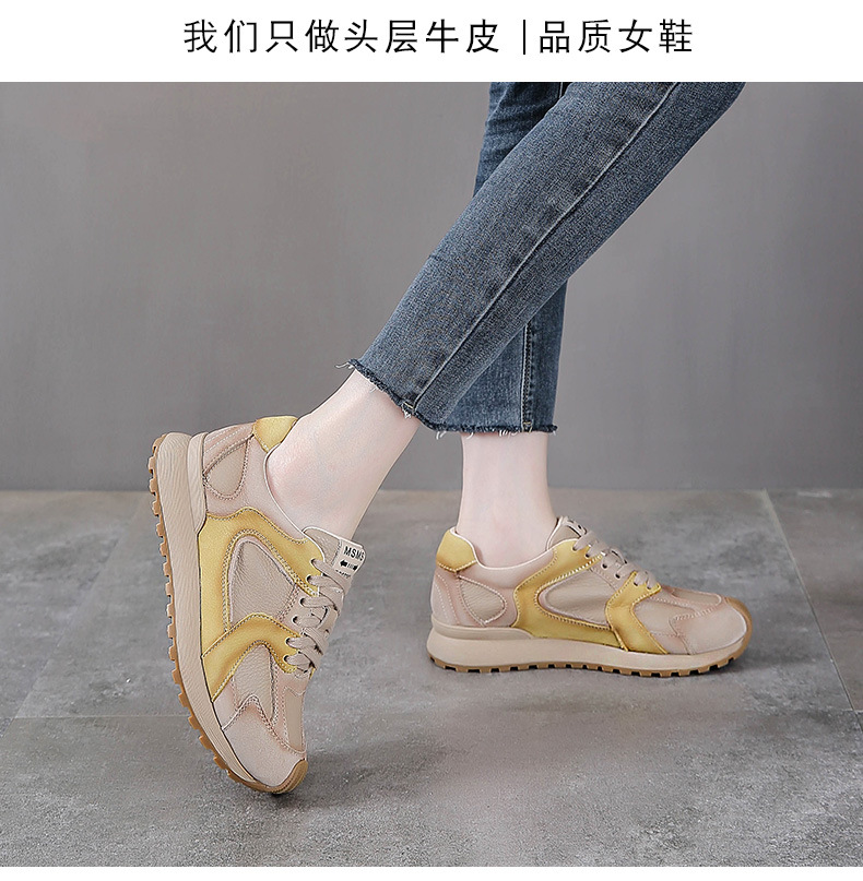 탑 레이어 Cowhide Forrest Gump 신발 여성의 봄과 가을 정품 가죽 색상 매칭 올 매치 레이스 업 신발 기모 플랫폼 스포츠 캐주얼 신발스토어 가기
