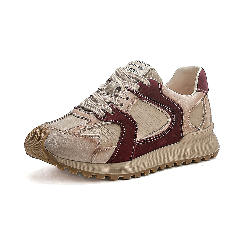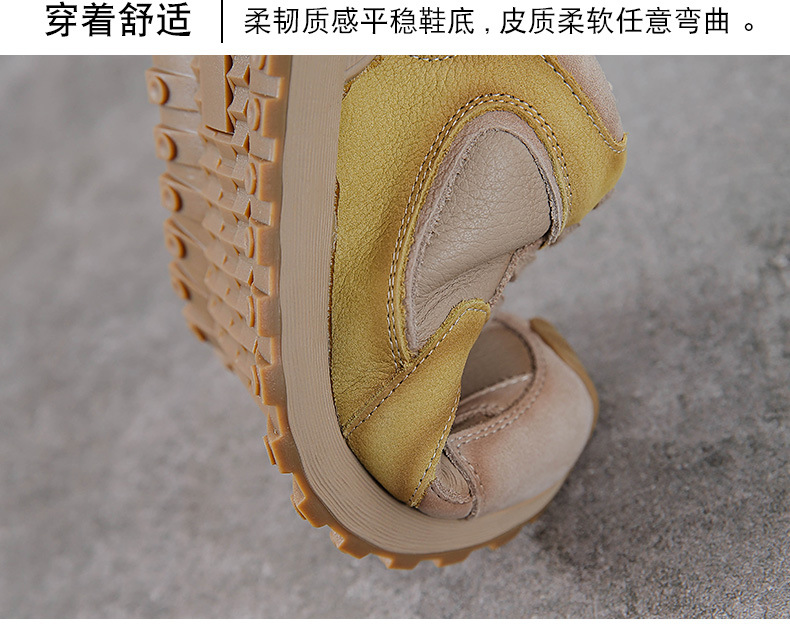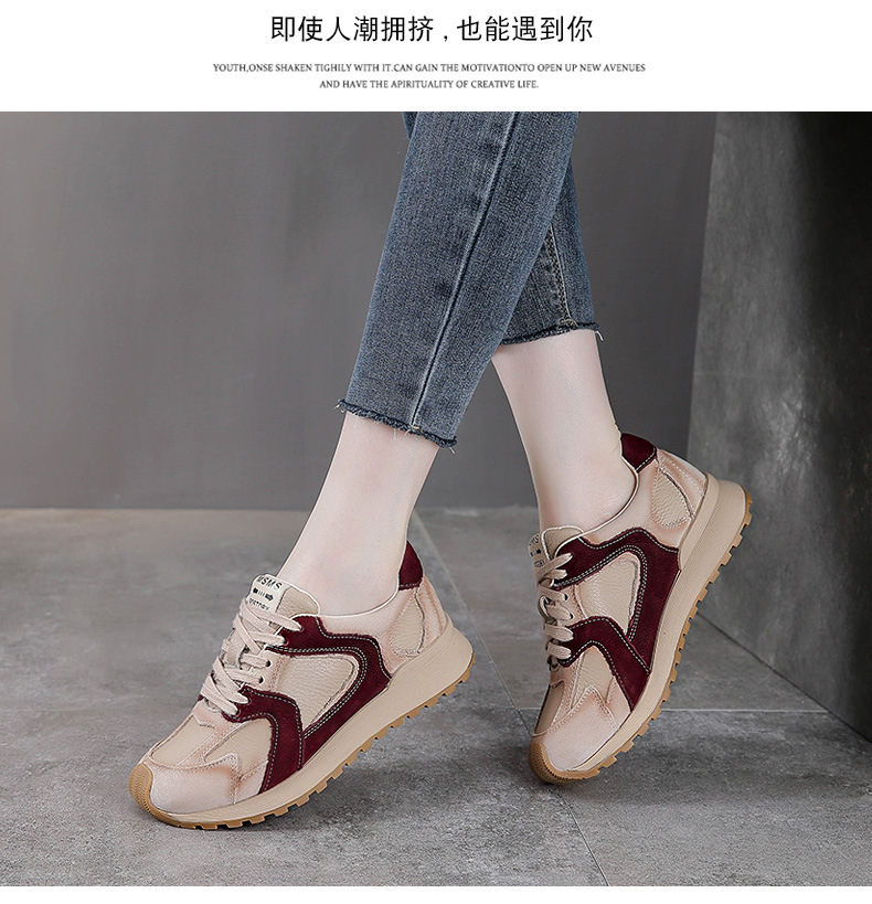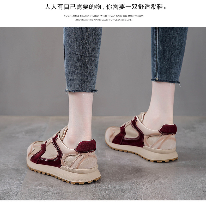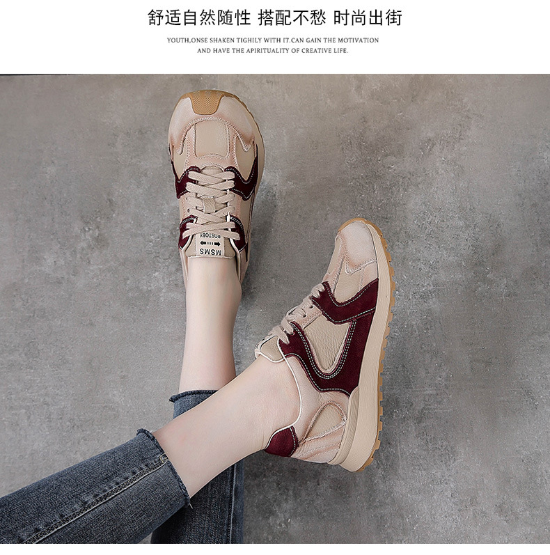 탑 레이어 Cowhide Forrest Gump 신발 여성의 봄과 가을 정품 가죽 색상 매칭 올 매치 레이스 업 신발 기모 플랫폼 스포츠 캐주얼 신발