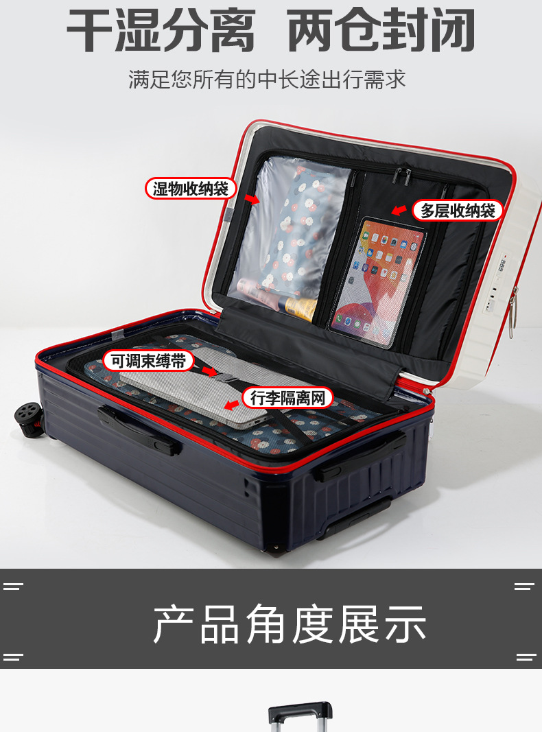 2025 새로운 대용량 전면 개방 가방 26 인치 28 낙하 방지 다기능 트롤리 가방 암호 상자