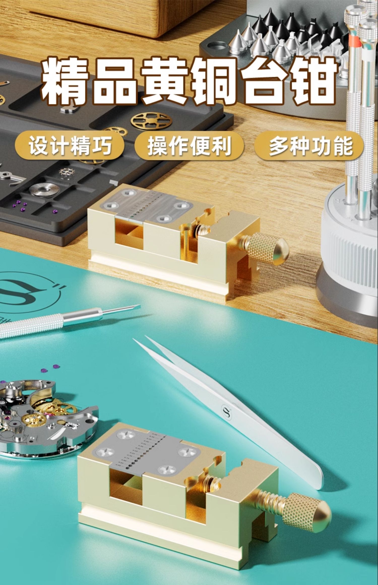 타임 치 시계 수리 도구 순수 구리 바이스 핸들 헤드 핸들 포인터 파이프 클램프 밸런스 휠 클램프 핸들 헤드 고정 시트 휠 클램프스토어 가기