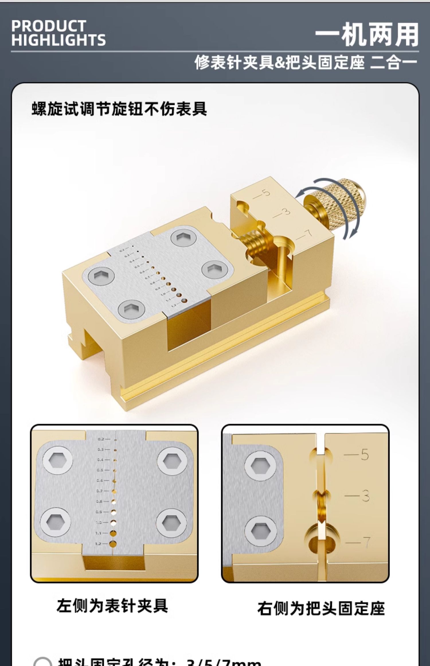 타임 치 시계 수리 도구 순수 구리 바이스 핸들 헤드 핸들 포인터 파이프 클램프 밸런스 휠 클램프 핸들 헤드 고정 시트 휠 클램프
