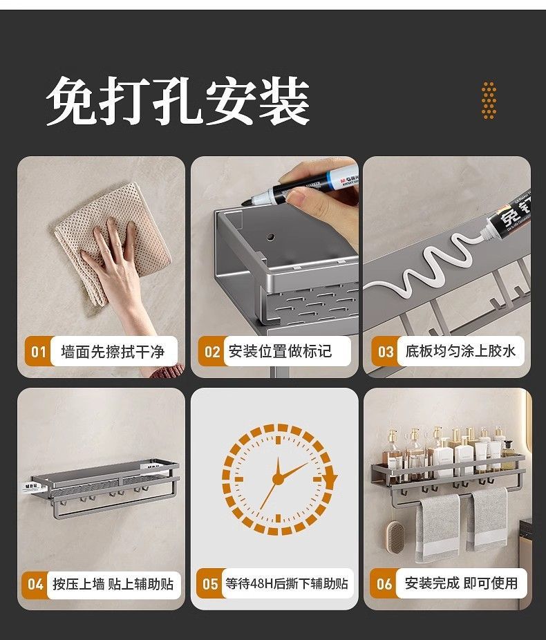 욕실 벽걸이 형 펀치없는 수건 걸이 보관 랙 욕실 단일 막대 목욕 수건 걸이 레일 세면대 보관 랙