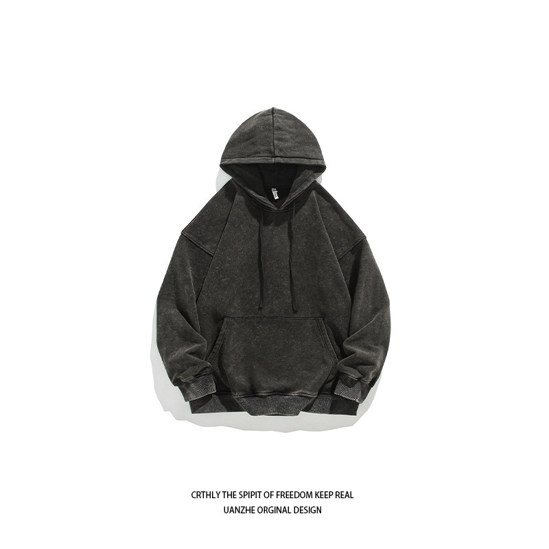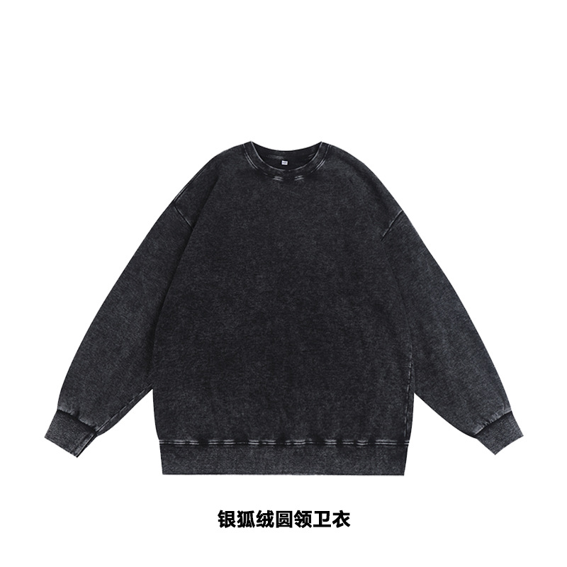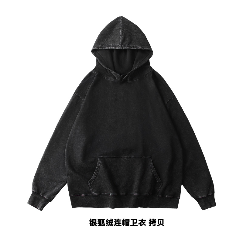 국경 간 복고풍 실버 여우 벨벳 후드 스웨터 가을과 겨울 기모 두껍게 긴 소매를 씻은 고민 스웨터 남성스토어 가기