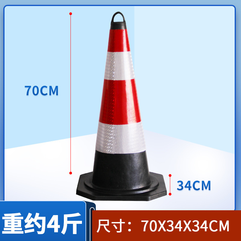 70cm 고무 도로 콘 반사 콘 리프팅 링 콘 배럴 아이스크림 콘 격리 콘 경고 칼럼 안전 바리케이드 삼각형 콘