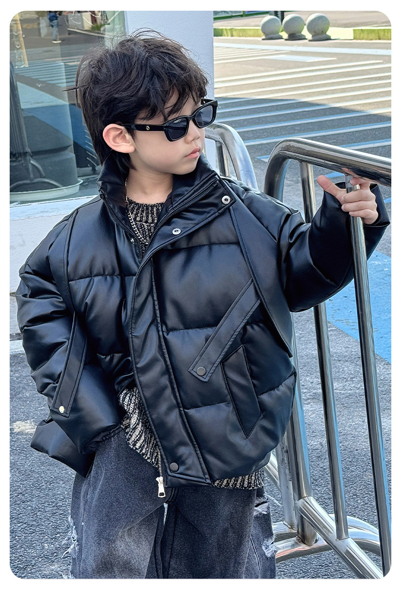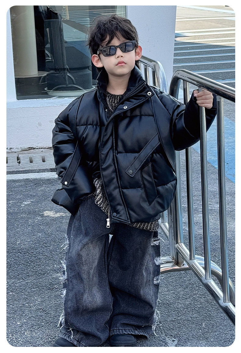 어린이 두꺼운 면 패딩 옷 2024 겨울 새 소년 한국 스타일 방풍 따뜻한 옷 어린이 겨울 옷 면 패딩 코트 트렌디