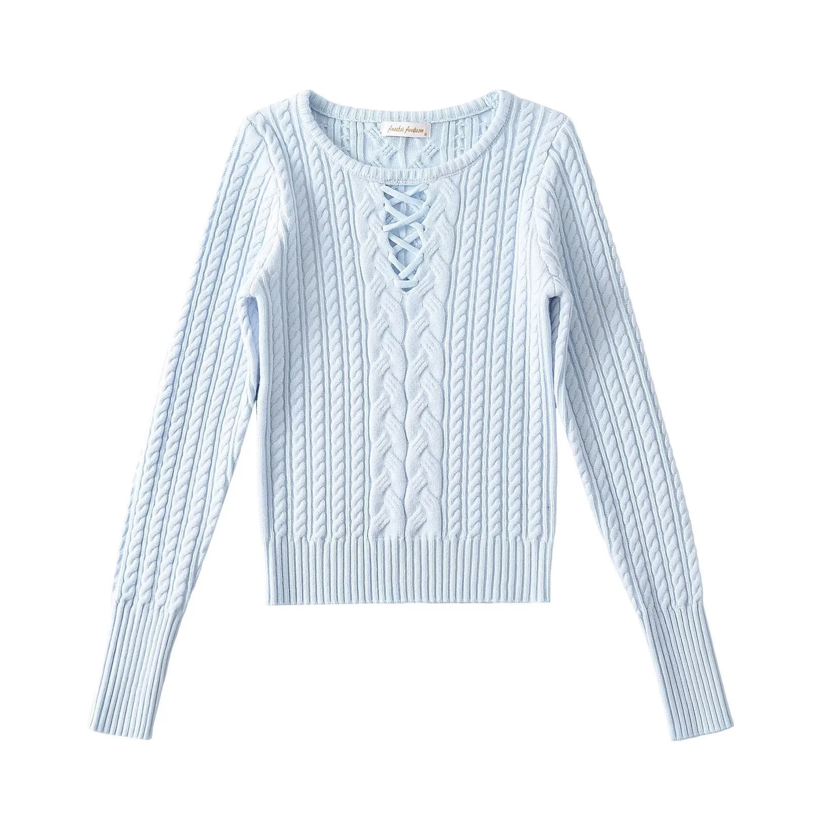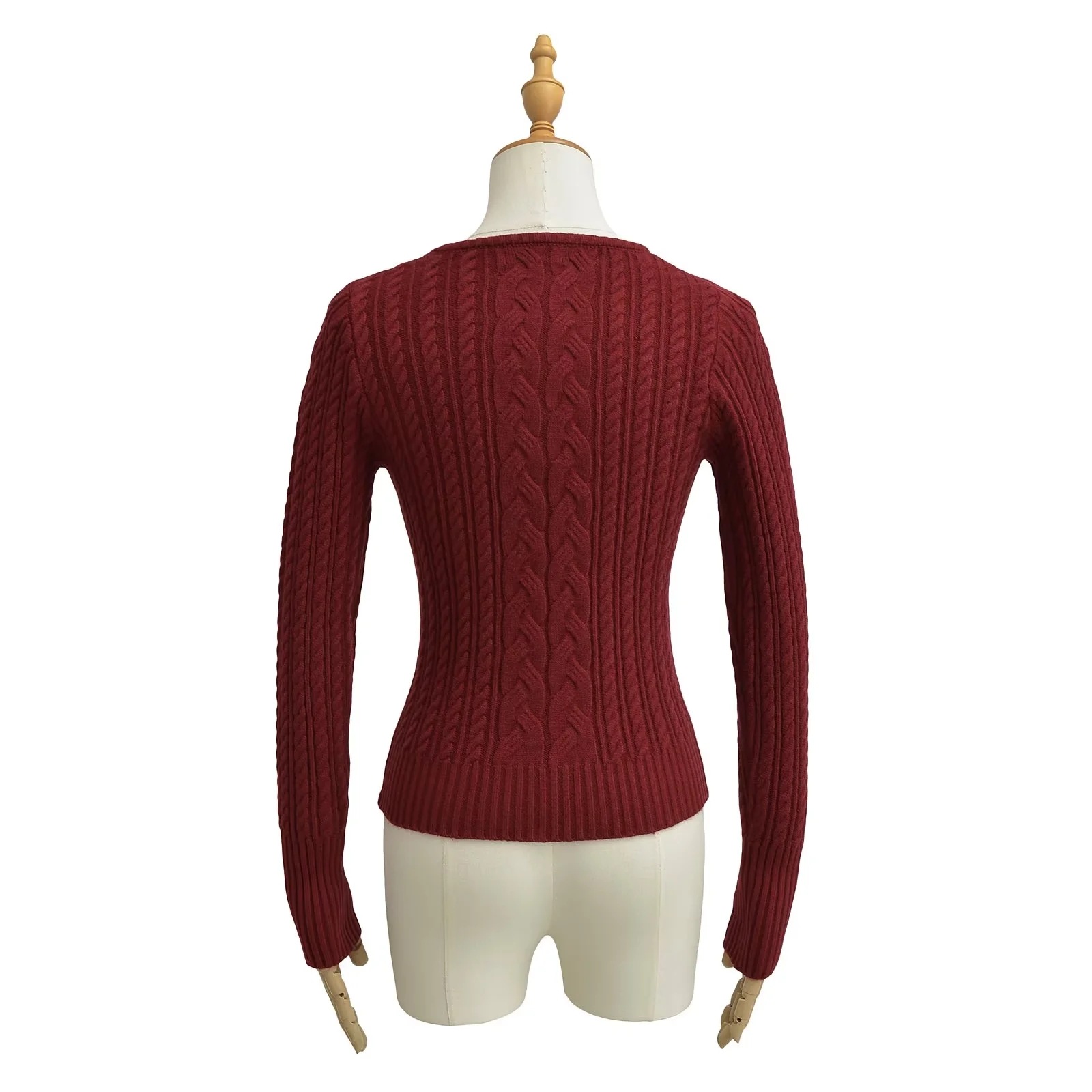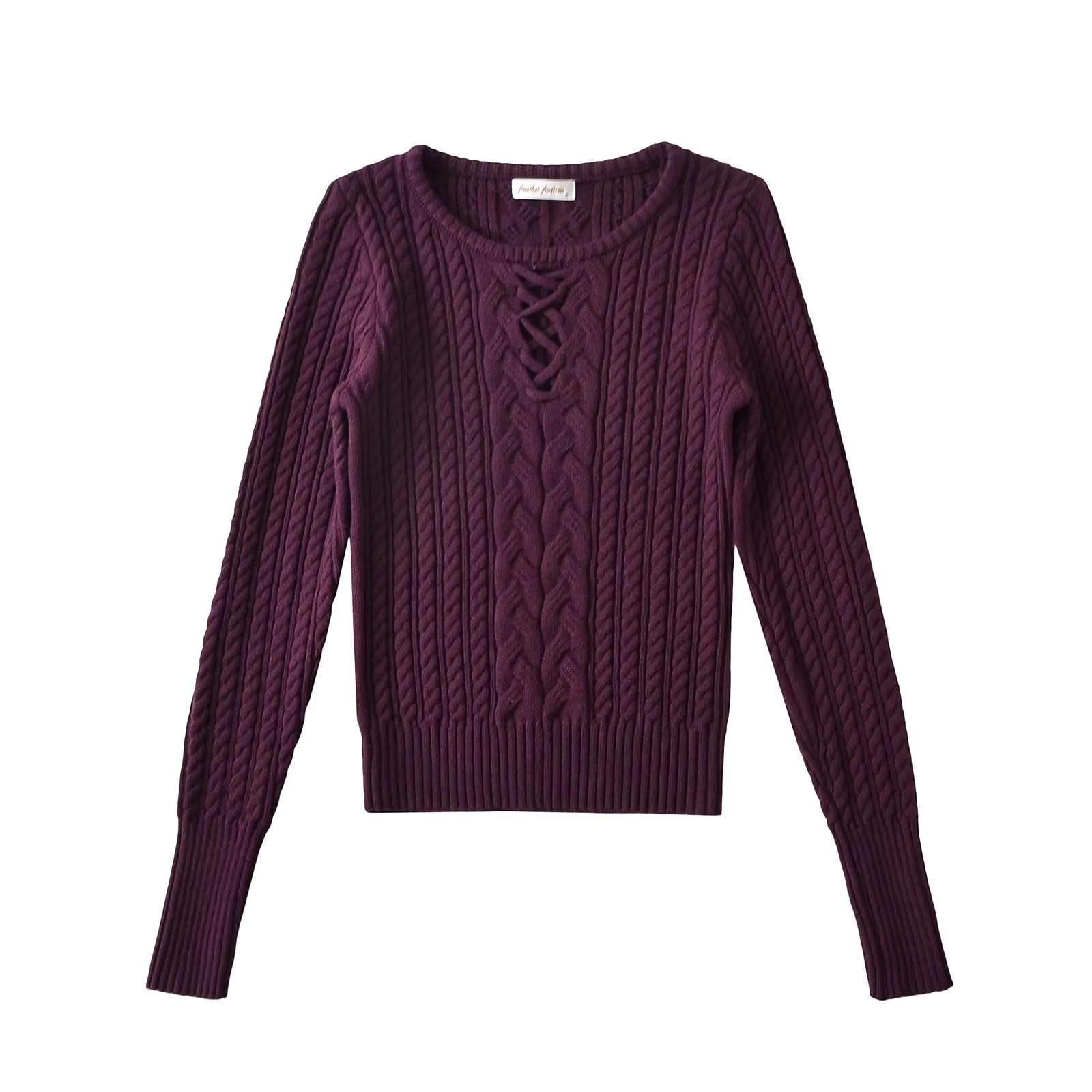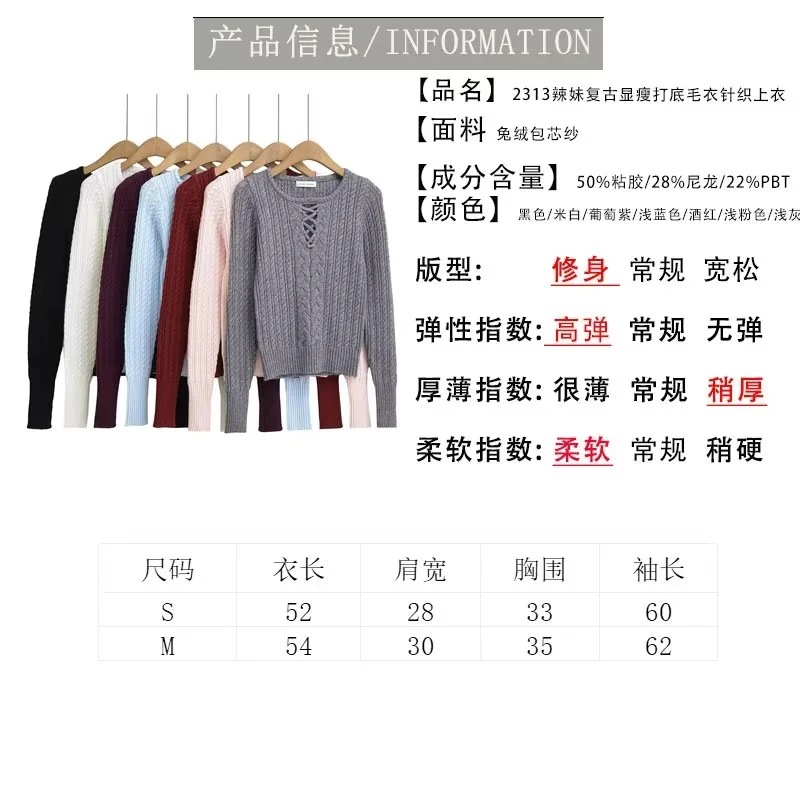 레드 퓨어 스파이스 소녀 스타일 긴 소매 섹시한 할로우 니트 셔츠 여성의 가을과 겨울 빈티지 타이트 허리 내베이스 셔츠 탑스토어 가기