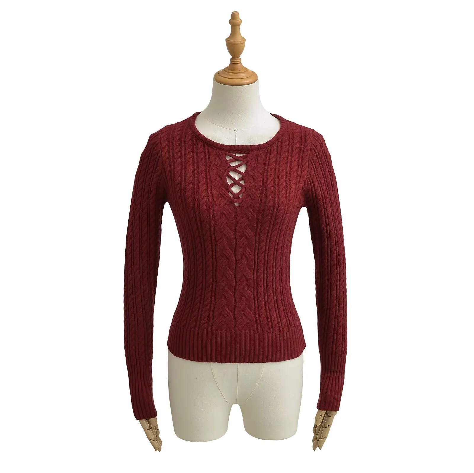 레드 퓨어 스파이스 소녀 스타일 긴 소매 섹시한 할로우 니트 셔츠 여성의 가을과 겨울 빈티지 타이트 허리 내베이스 셔츠 탑