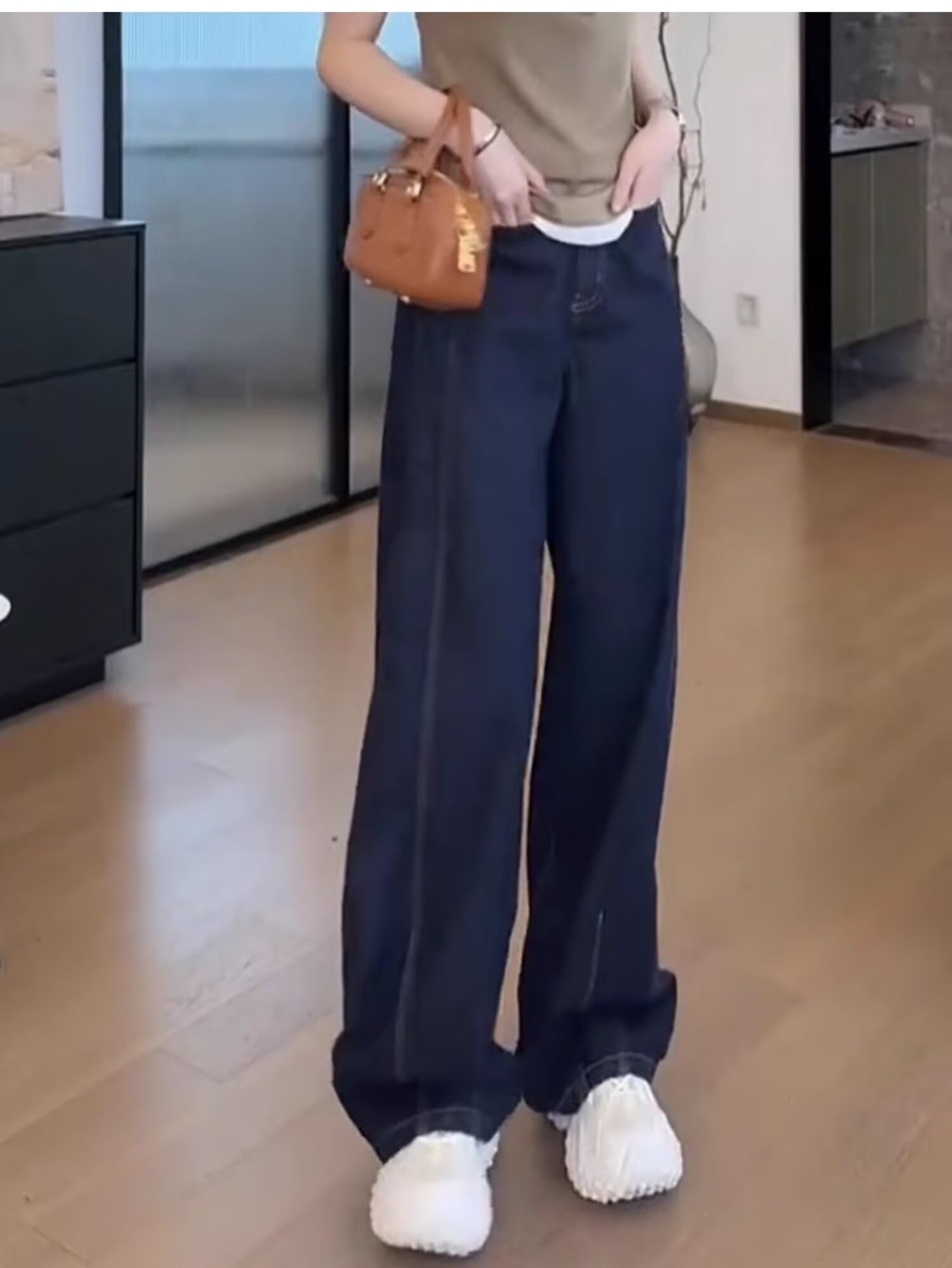 2024 가을과 겨울 새로운 조커 다크 블루 스트레이트 팬츠 3 차원 커팅 디자인 센스 마체 테 청바지 좁은 버전 가을스토어 가기