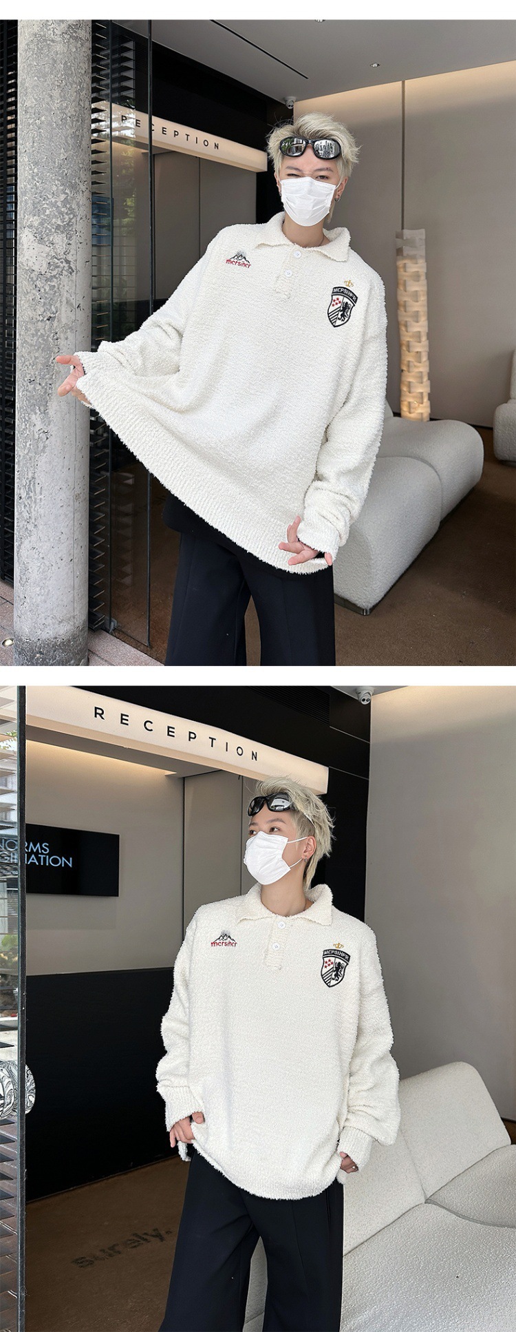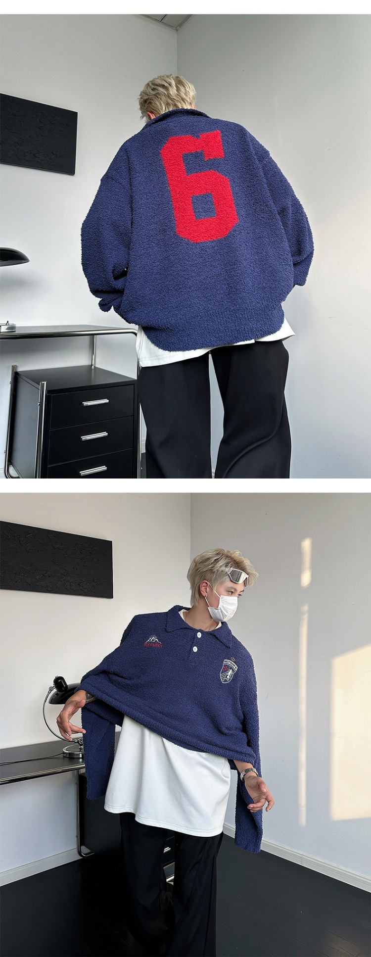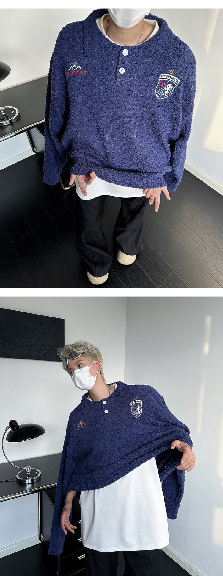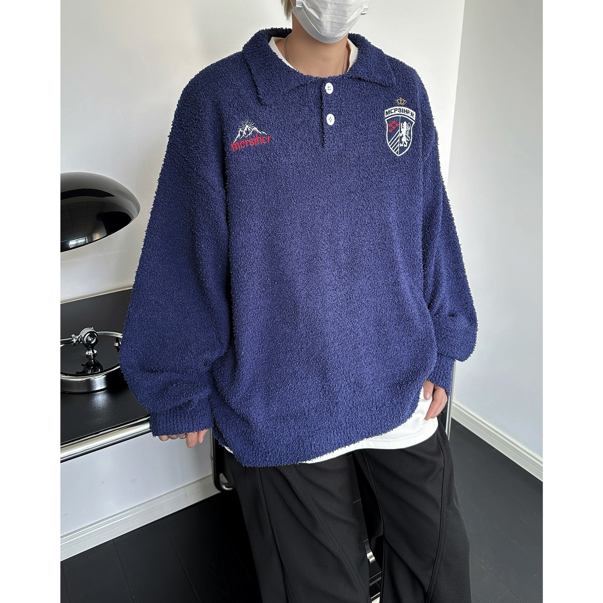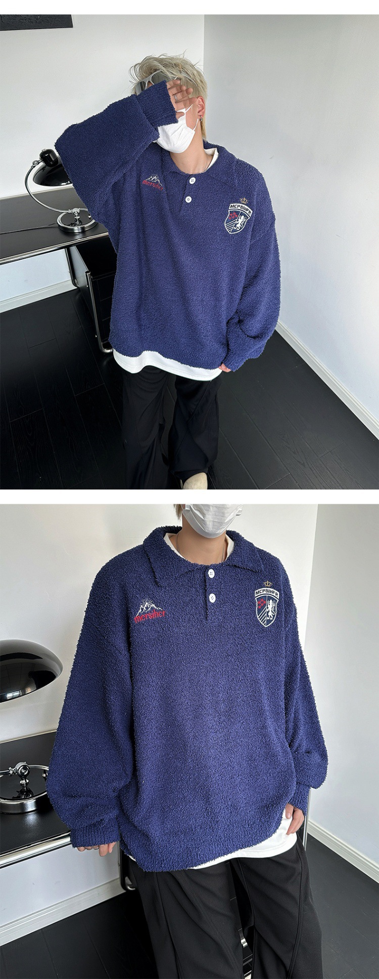 빈티지 라 플러시 게으른 스타일 부드러운 왁스 스웨터 남성과 여성의 느슨한 미국 캐주얼 풀오버 자수 스웨터 커플