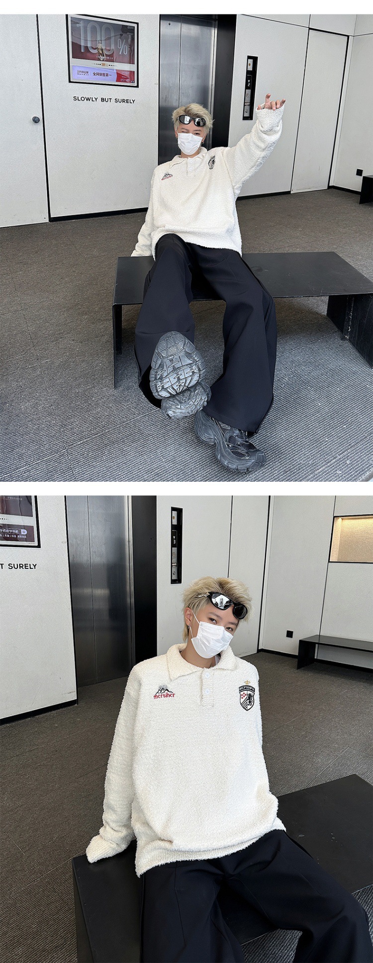빈티지 라 플러시 게으른 스타일 부드러운 왁스 스웨터 남성과 여성의 느슨한 미국 캐주얼 풀오버 자수 스웨터 커플스토어 가기