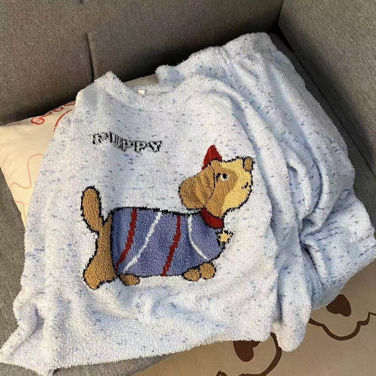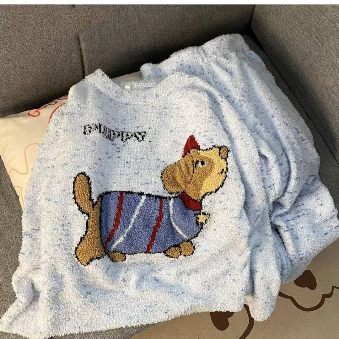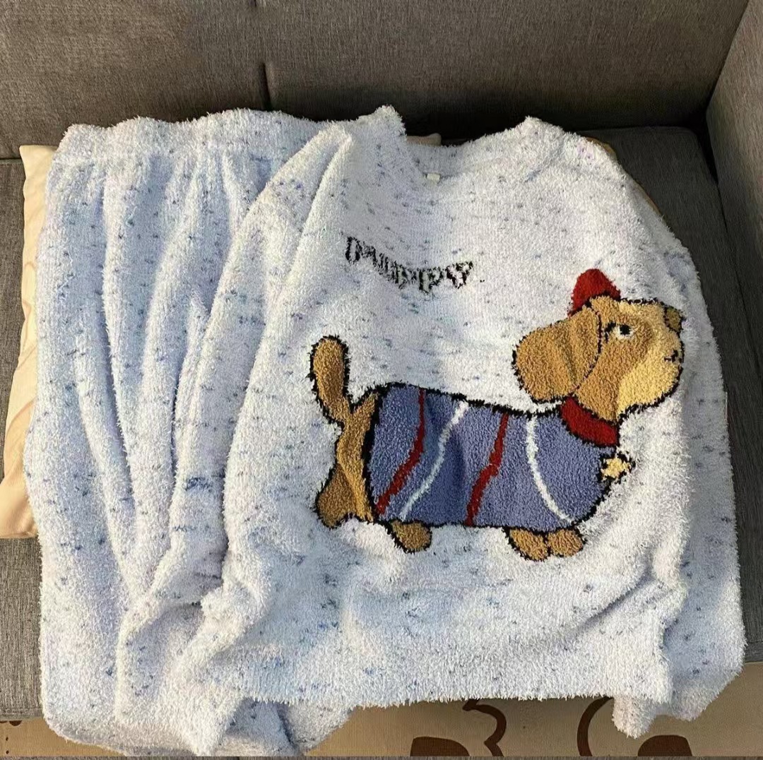 폭발 닥스 훈트 개 잠옷 여성의 가을과 겨울 반쪽 벨벳 정전기 방지 외부 착용 만화 기모 두꺼운 홈 의류 세트스토어 가기