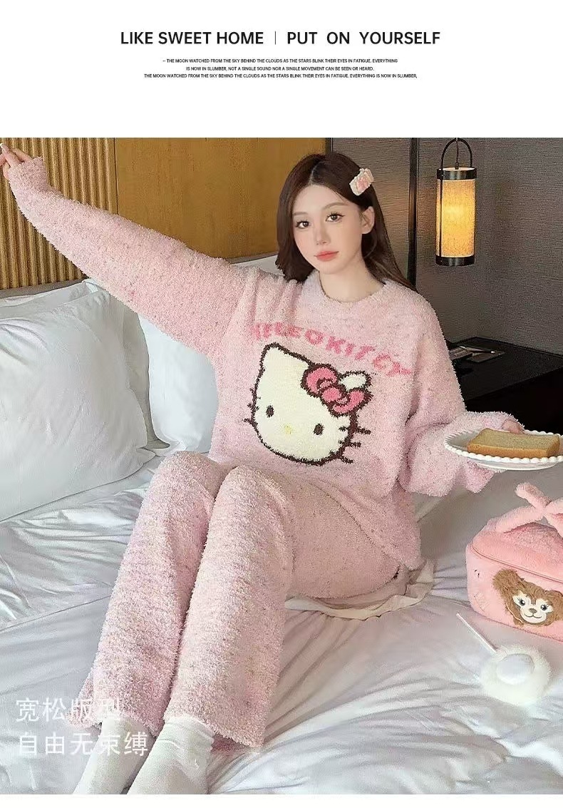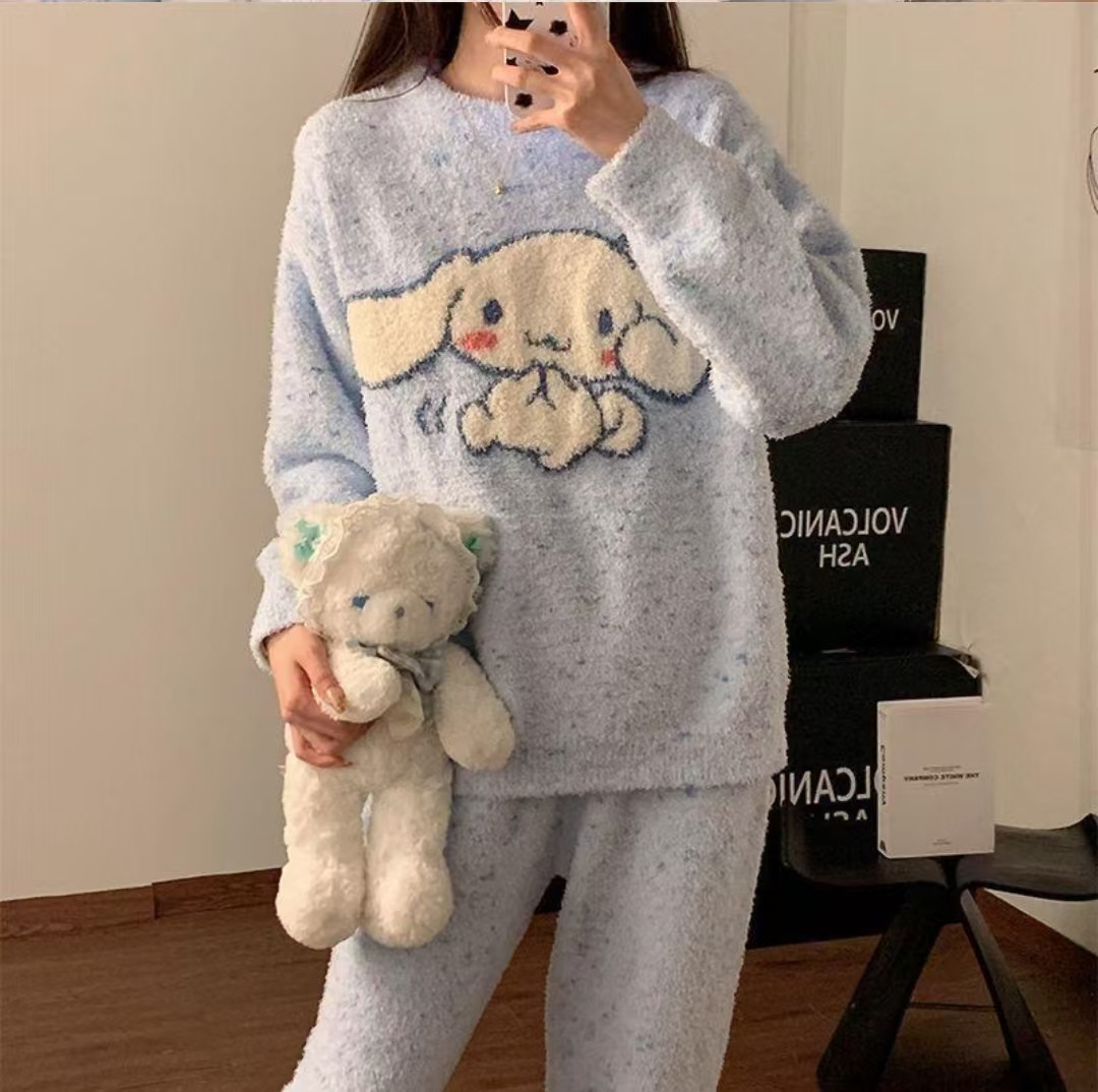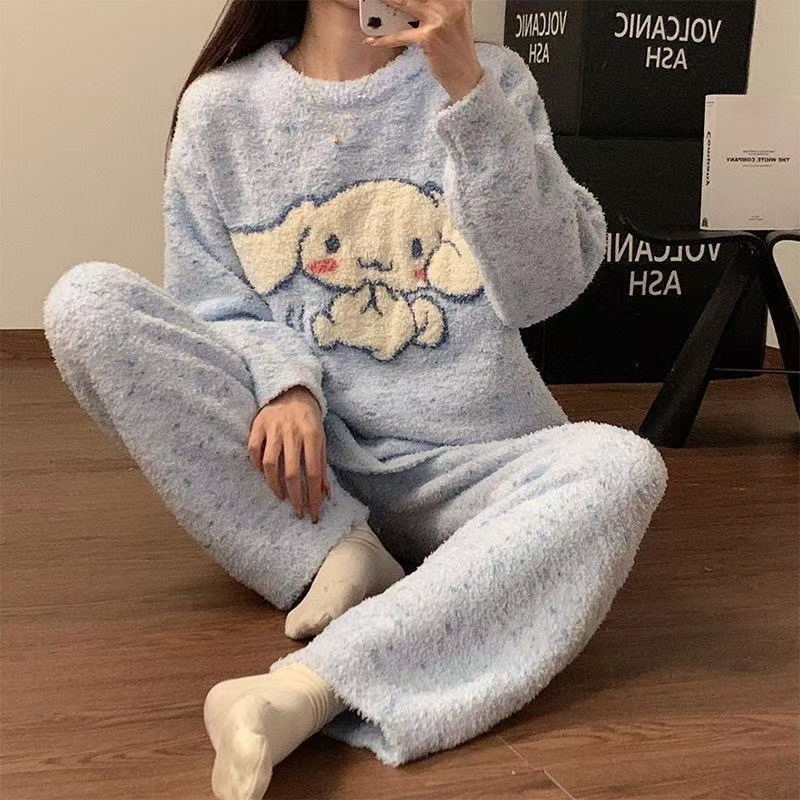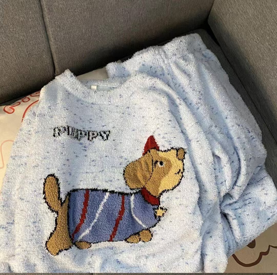 폭발 닥스 훈트 개 잠옷 여성의 가을과 겨울 반쪽 벨벳 정전기 방지 외부 착용 만화 기모 두꺼운 홈 의류 세트스토어 가기