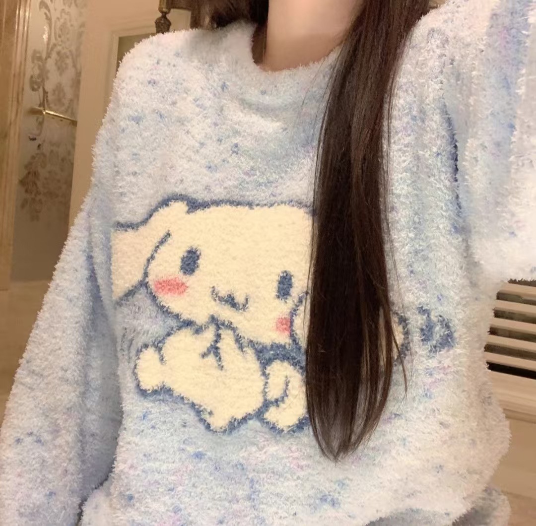 폭발 닥스 훈트 개 잠옷 여성의 가을과 겨울 반쪽 벨벳 정전기 방지 외부 착용 만화 기모 두꺼운 홈 의류 세트