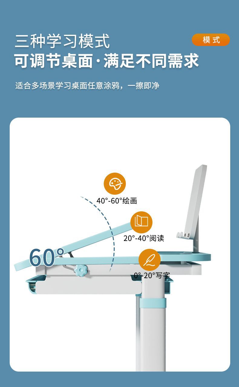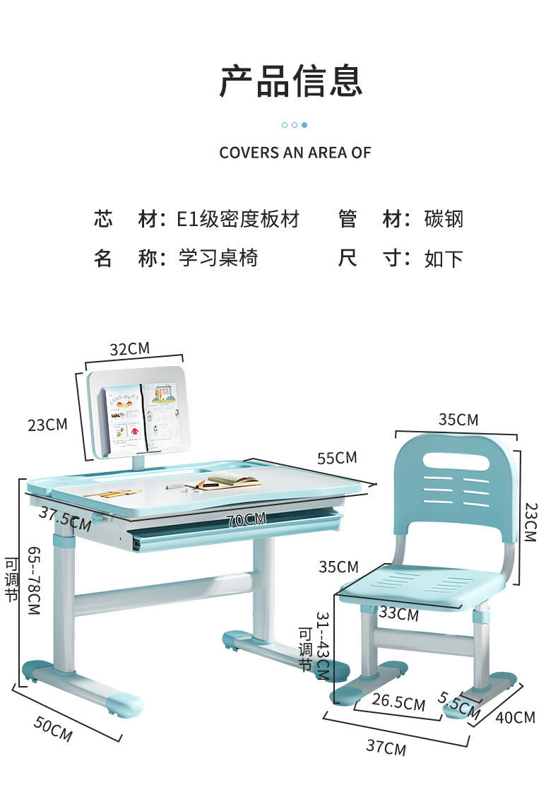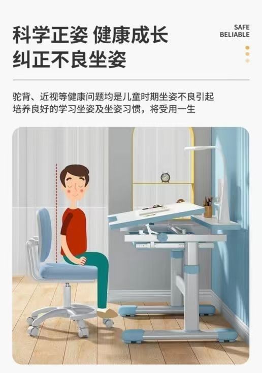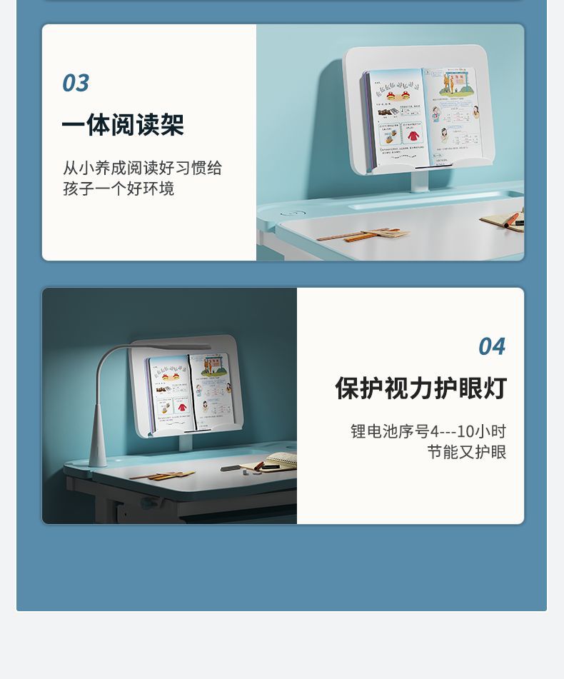 • 하늘색 - 리프팅 및 리프팅 단일 테이블 + 리프팅 및 리프팅 플라스틱 의자 - 무료 독서대 + 플러그인 눈 보호 램프