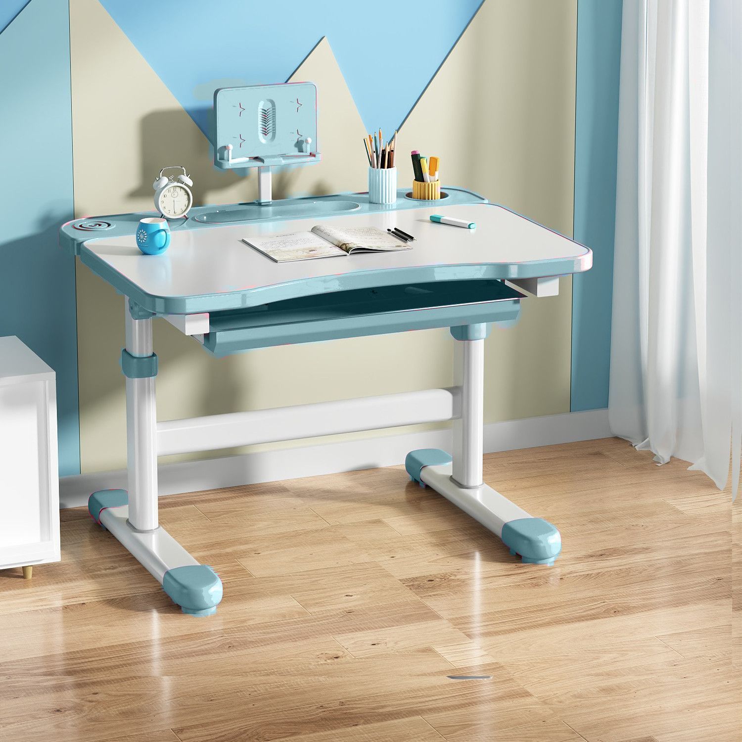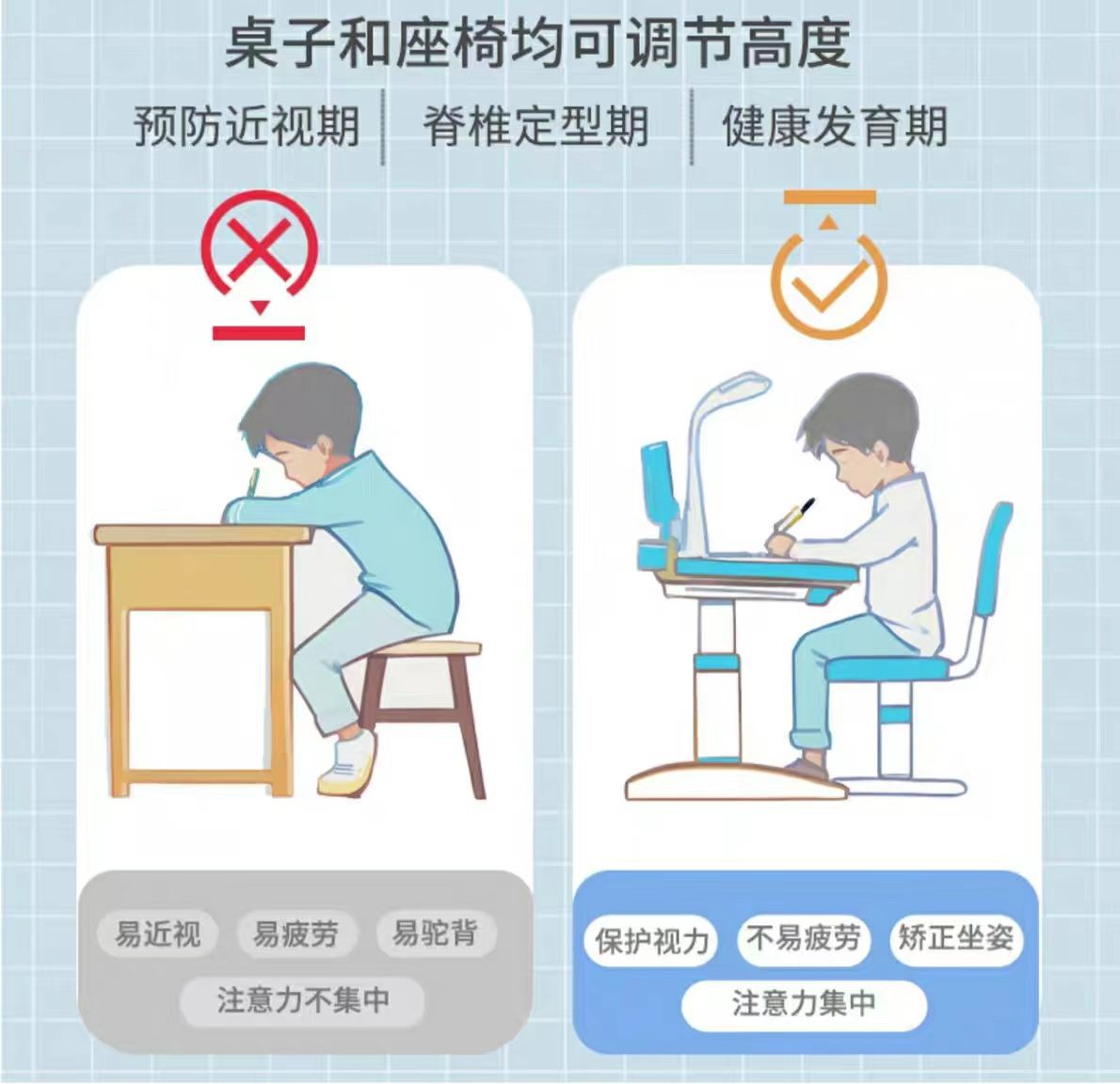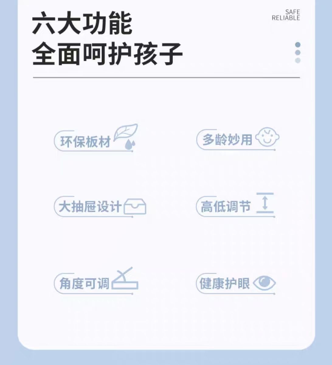 • 하늘색 - 리프팅 및 리프팅 단일 테이블 + 리프팅 및 리프팅 플라스틱 의자 - 무료 독서대 + 플러그인 눈 보호 램프