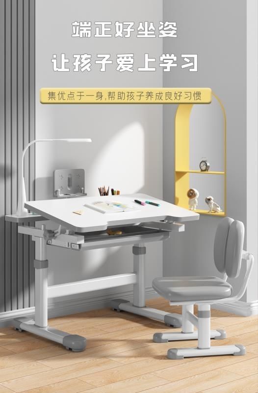 • 헤이지 그레이 - 리프팅 및 리프팅 싱글 테이블 + 리프팅 플라스틱 의자 - 무료 독서대 + 플러그인 눈 보호 램프
