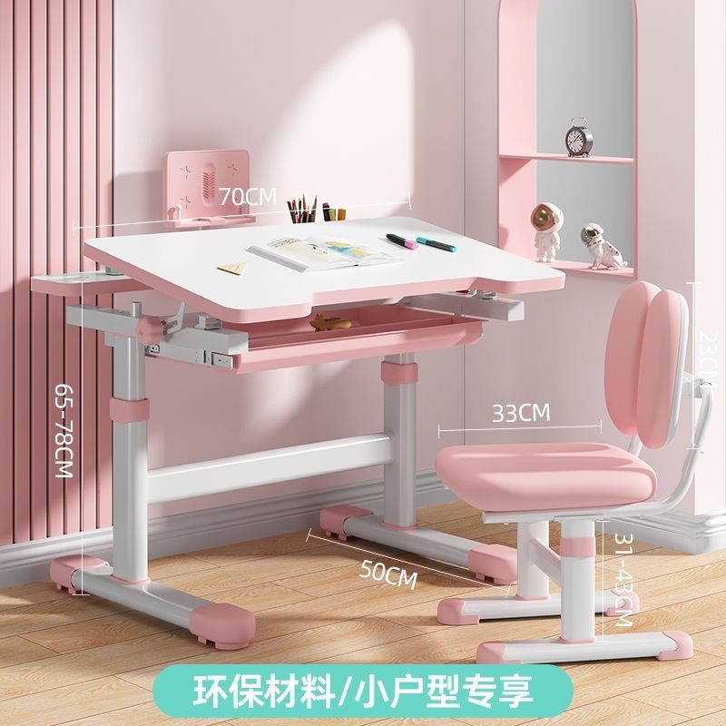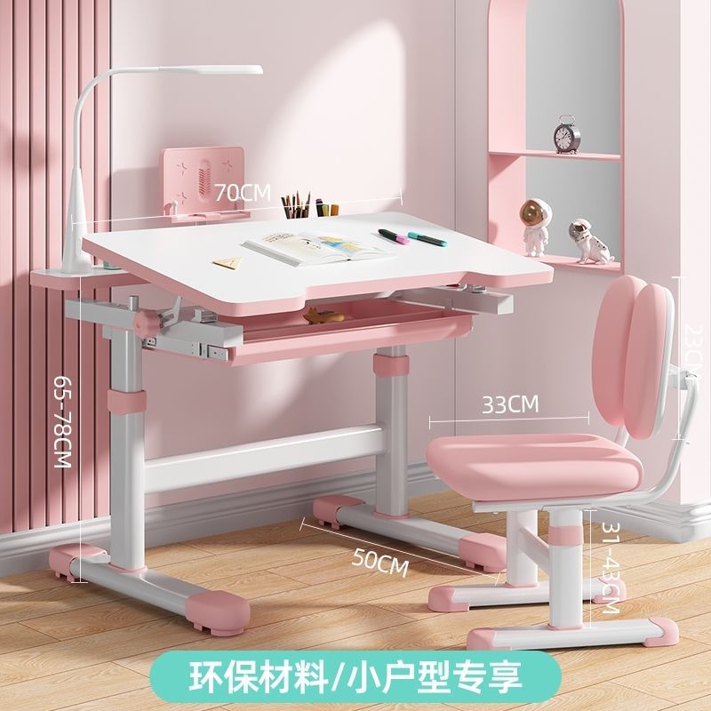 • 사쿠라 핑크 - 핸드 리프트 싱글 테이블 + 편안한 스펀지 의자 - 무료 독서대 + 플러그인 눈 보호 램프