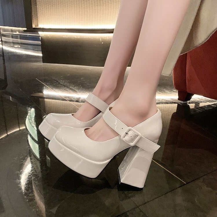 12cm 프랑스 메리 제인 신발 얕은 입 하이힐 방수 플랫폼 스커트 작은 유행 싱글 신발스토어 가기