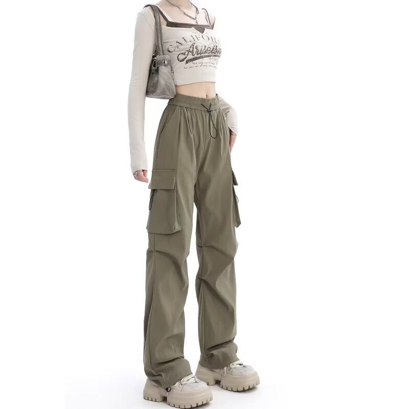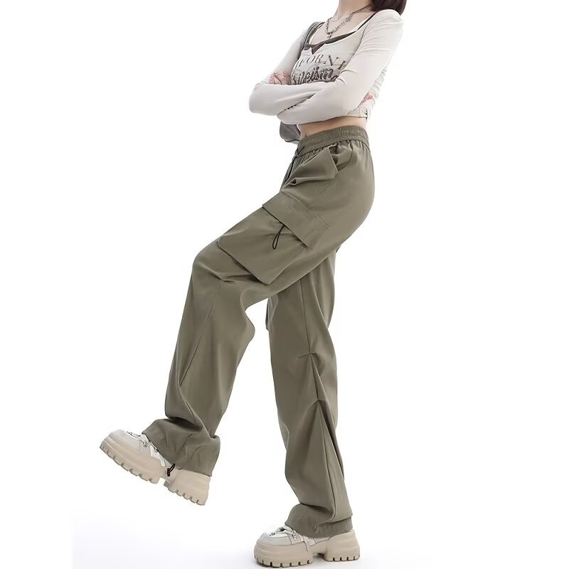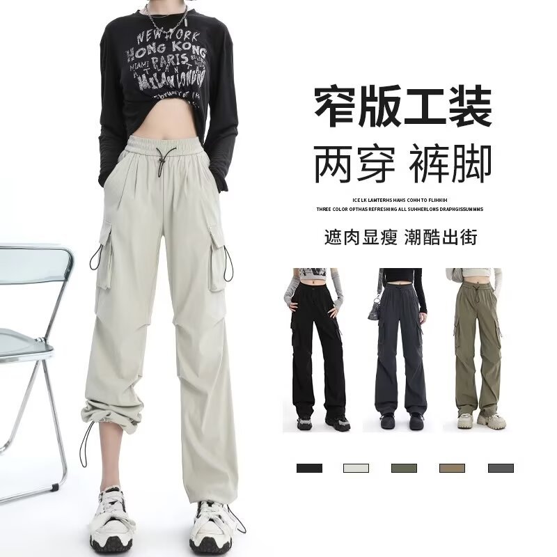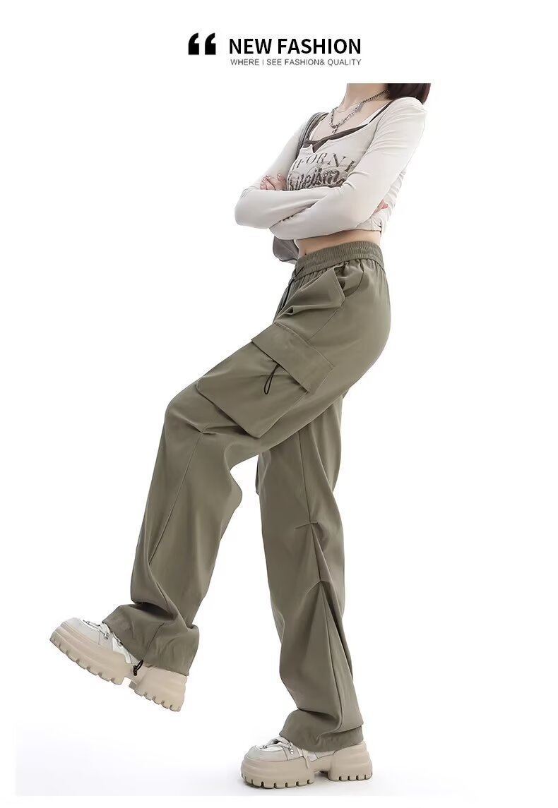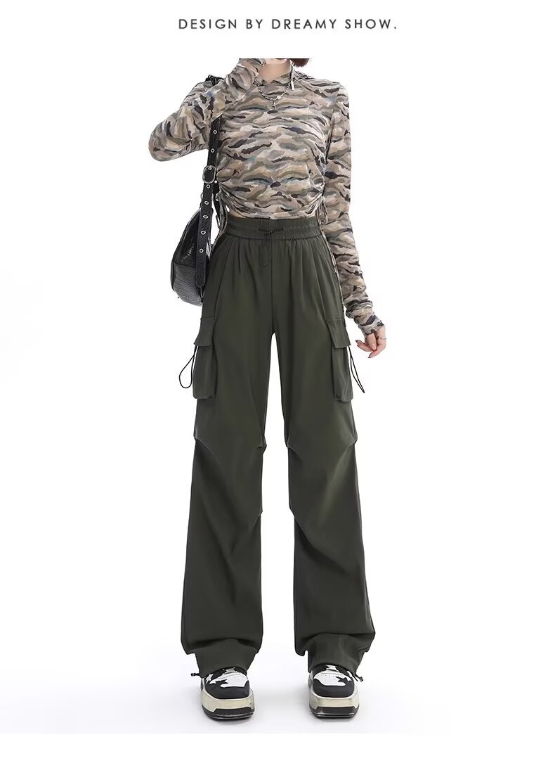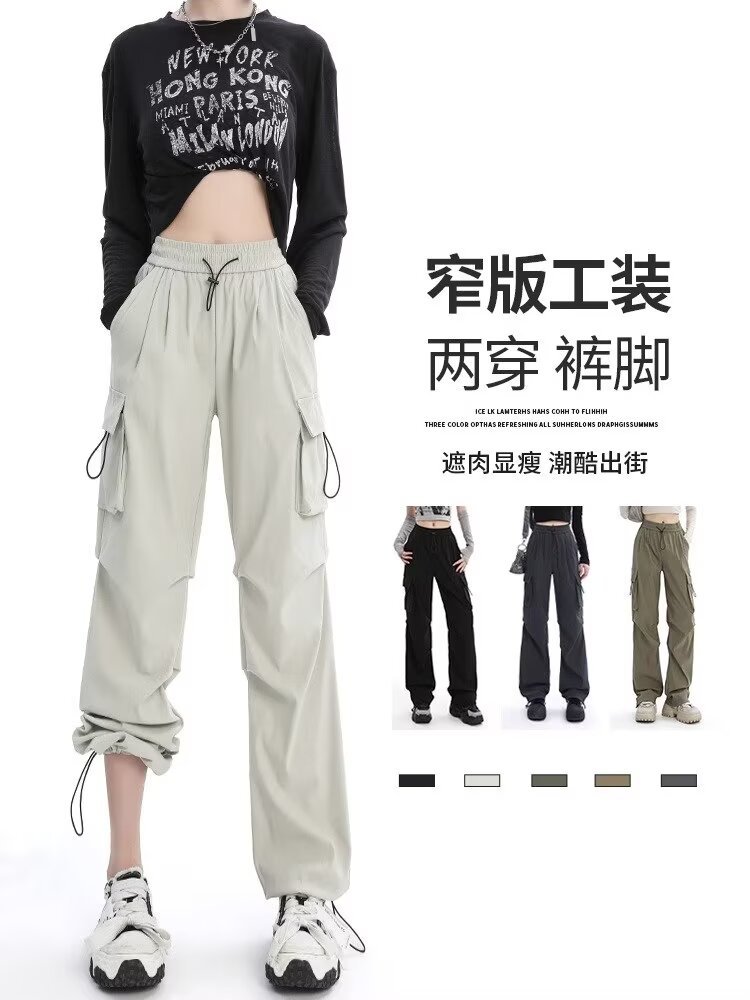 카키 미국식 바지 여성 여름 얇은 발가락 넓은 다리 스포츠 낙하산 등산 폭행 낙하산 바지스토어 가기
