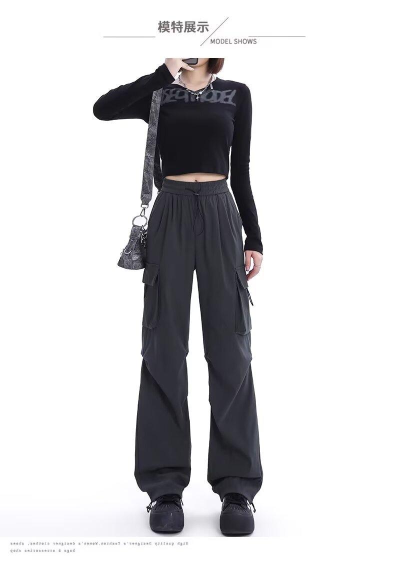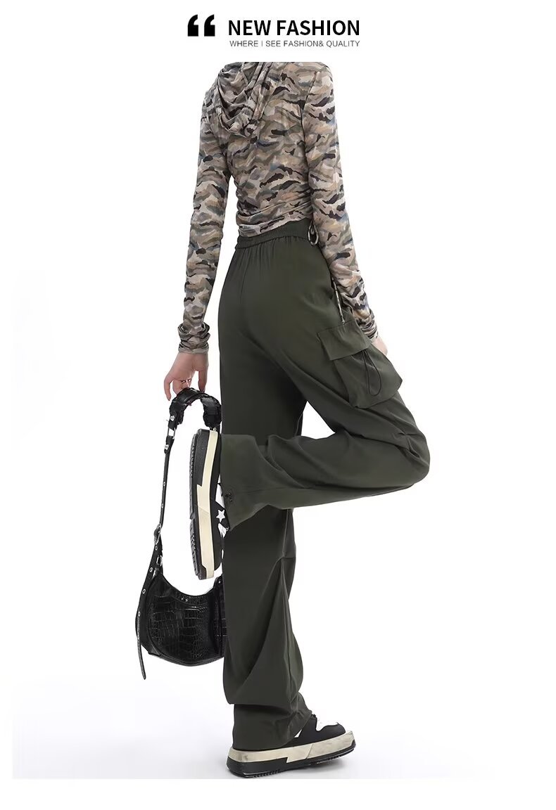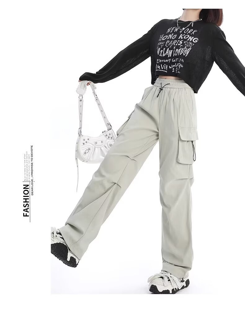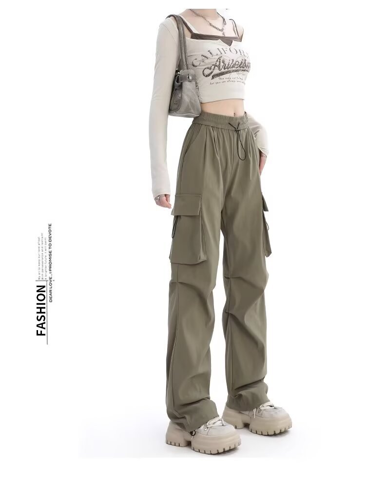 카키 미국식 바지 여성 여름 얇은 발가락 넓은 다리 스포츠 낙하산 등산 폭행 낙하산 바지스토어 가기