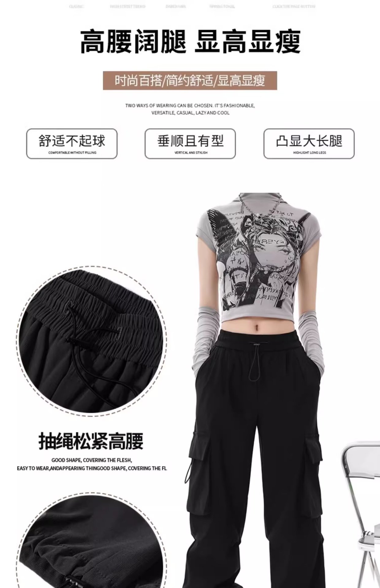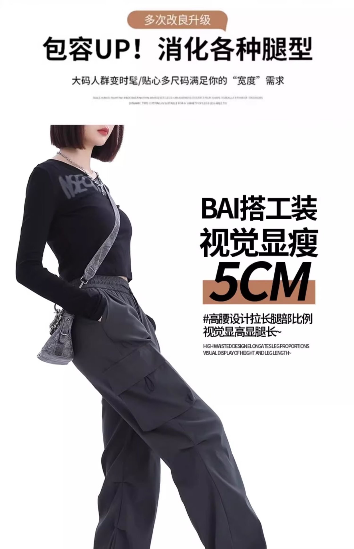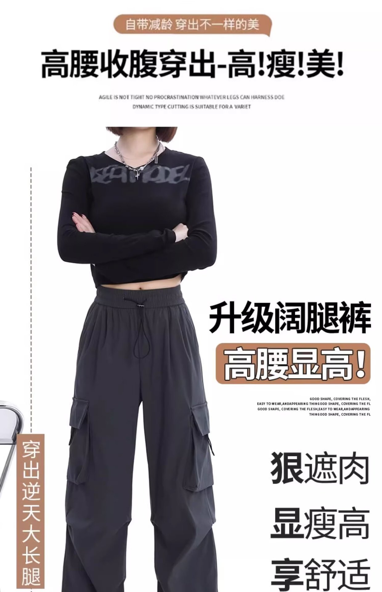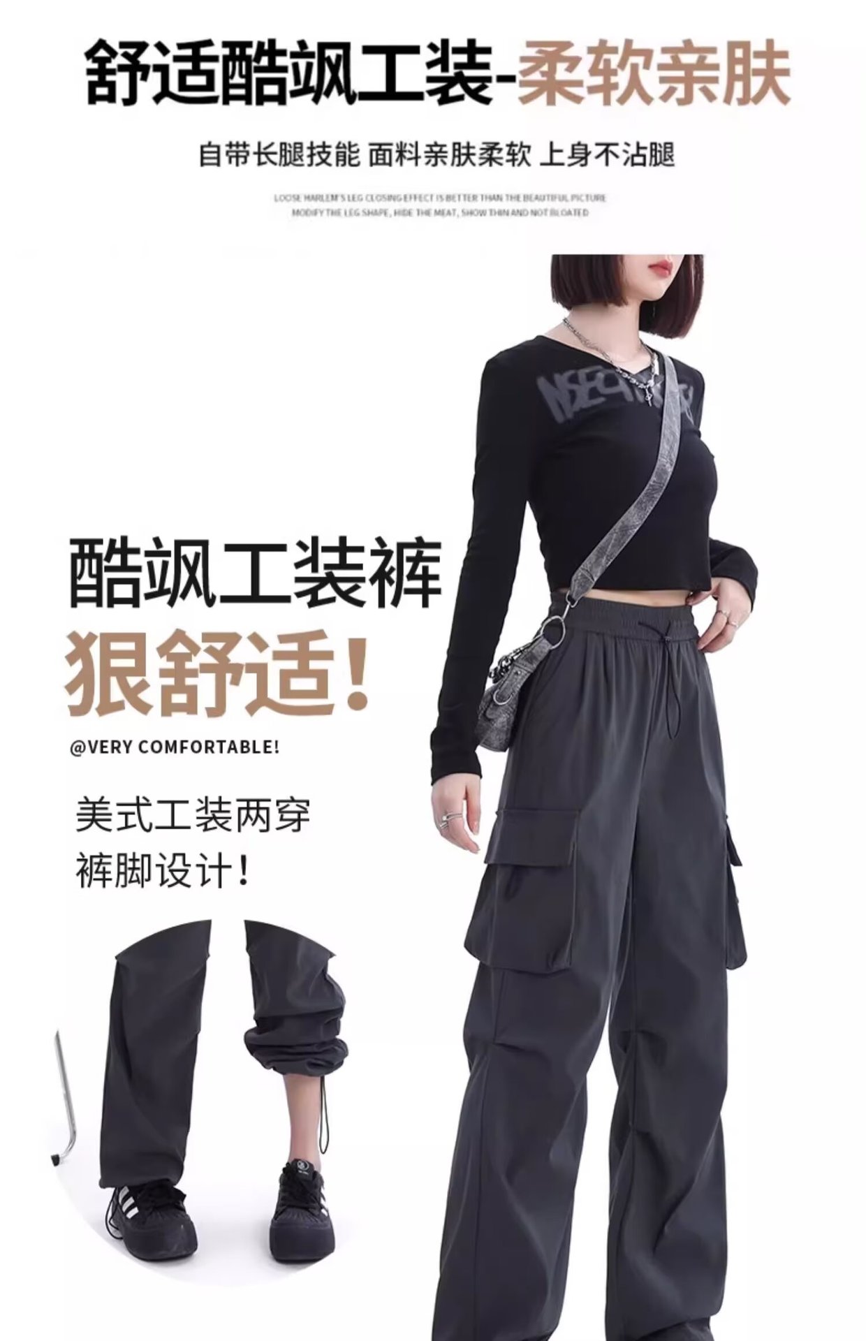 카키 미국식 바지 여성 여름 얇은 발가락 넓은 다리 스포츠 낙하산 등산 폭행 낙하산 바지스토어 가기