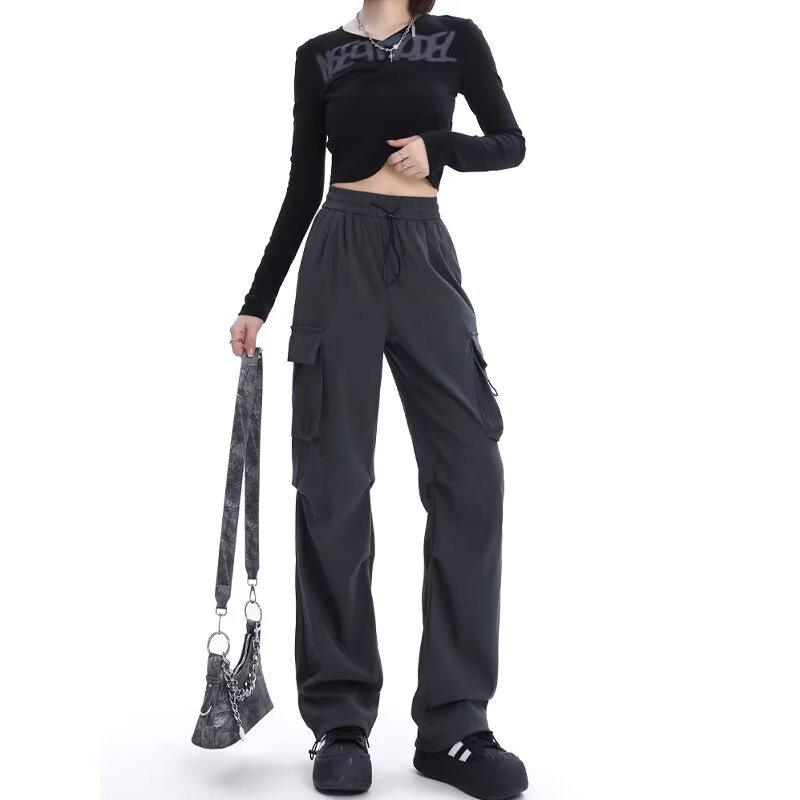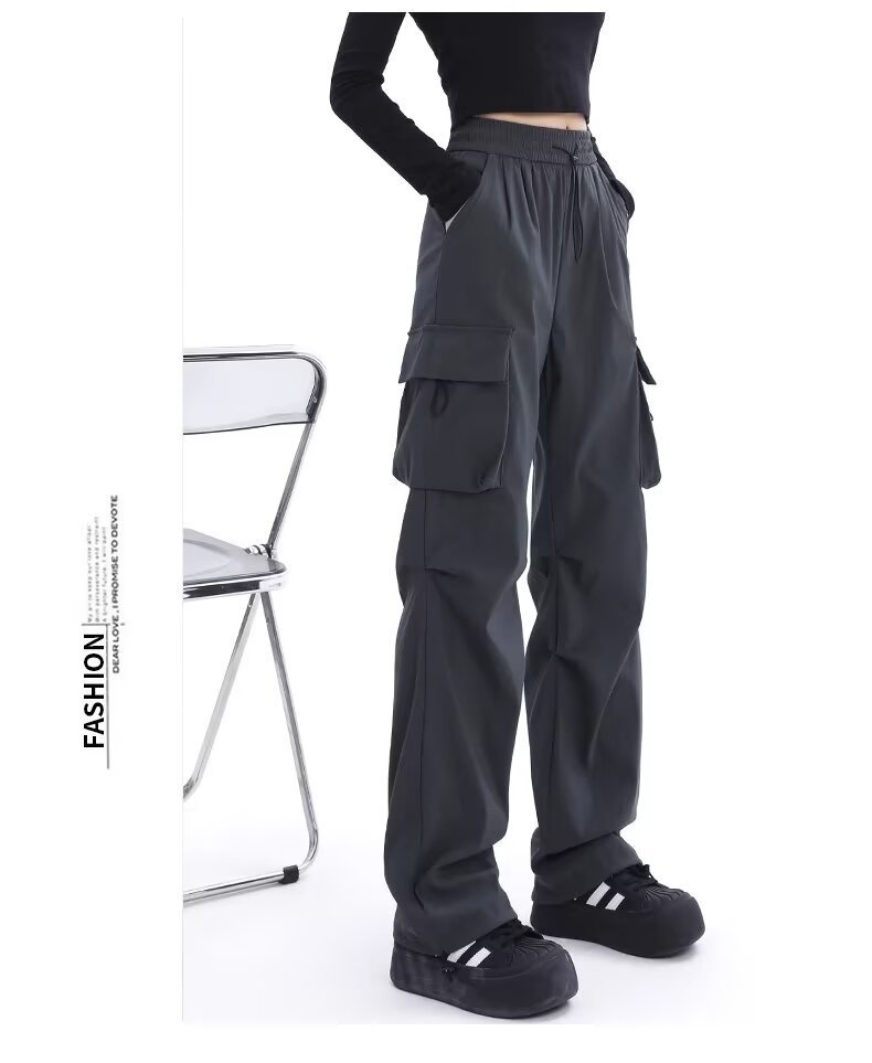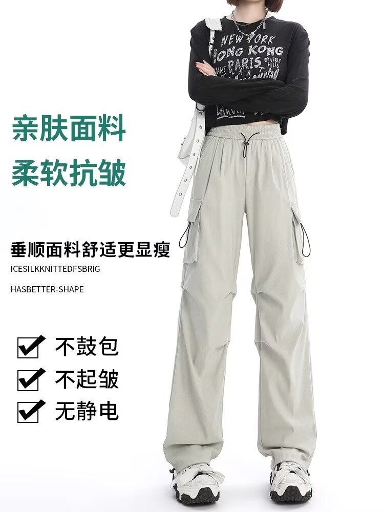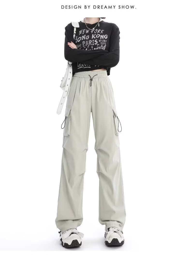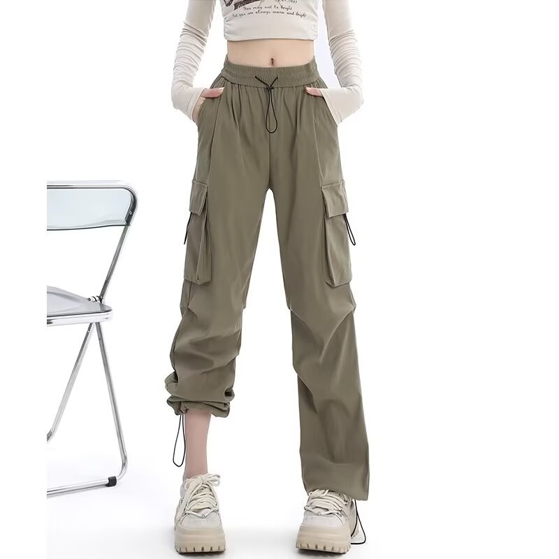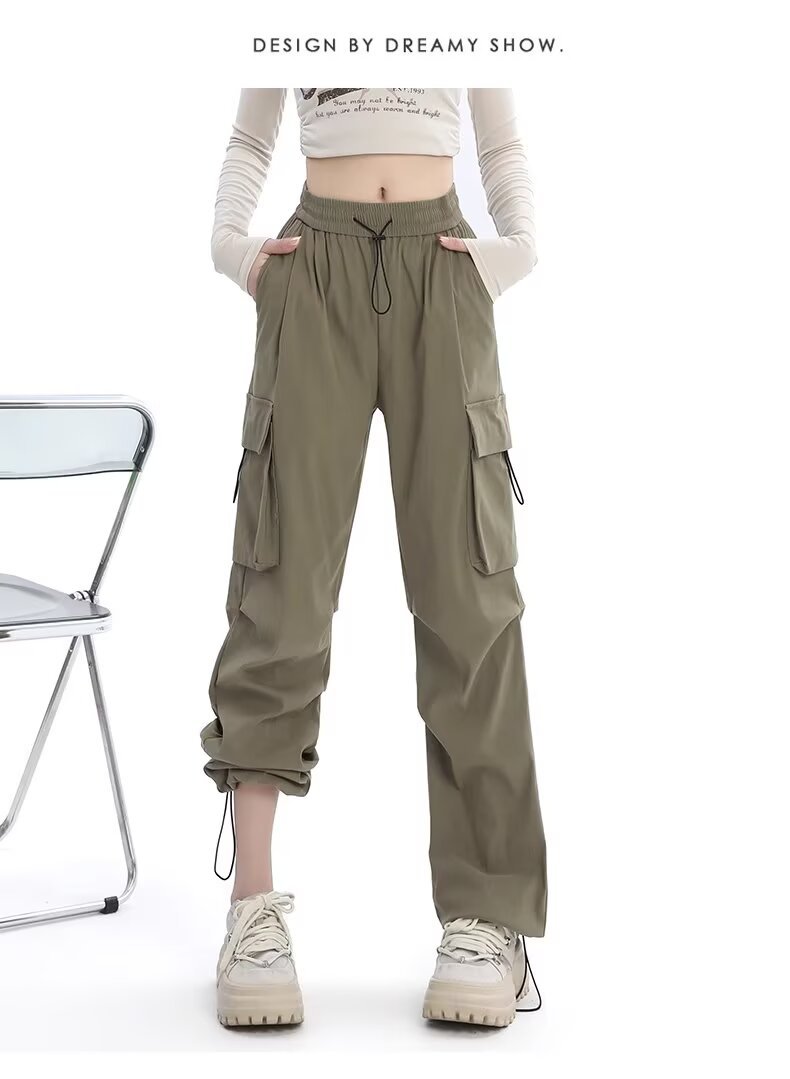 카키 미국식 바지 여성 여름 얇은 발가락 넓은 다리 스포츠 낙하산 등산 폭행 낙하산 바지