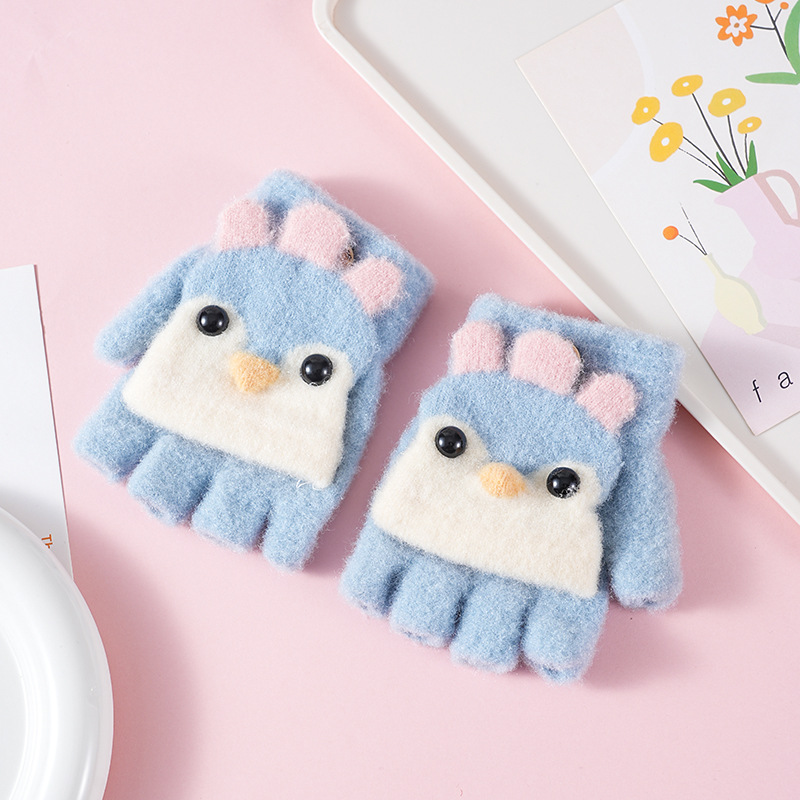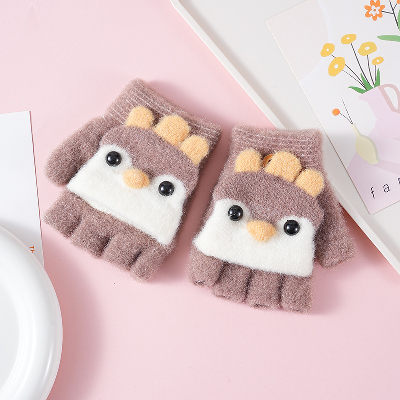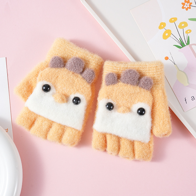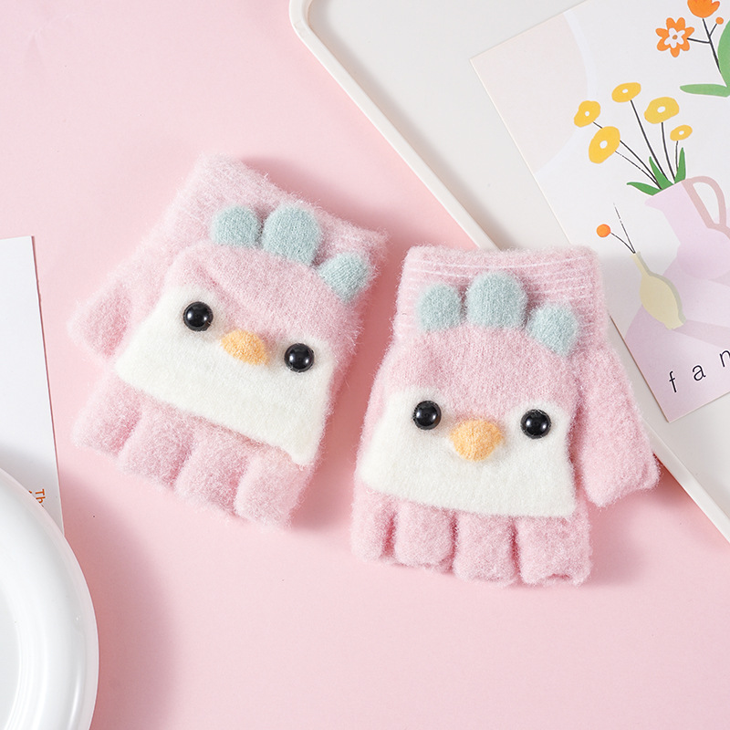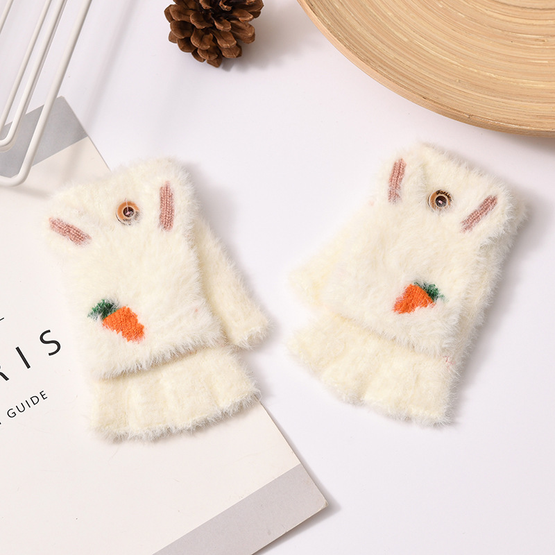 가을과 겨울 두꺼운 어린이 만화 토끼 반 손가락 플립 커버 장갑 소년 소녀를위한 귀여운 어린이 손가락 노출 니트 장갑