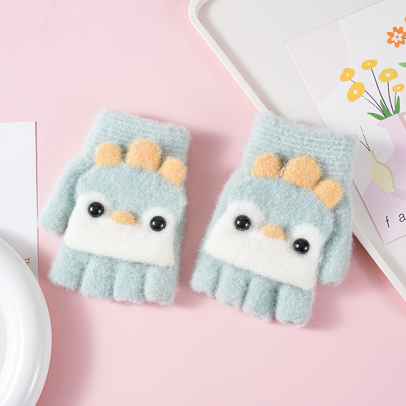 가을과 겨울 두꺼운 어린이 만화 토끼 반 손가락 플립 커버 장갑 소년 소녀를위한 귀여운 어린이 손가락 노출 니트 장갑스토어 가기