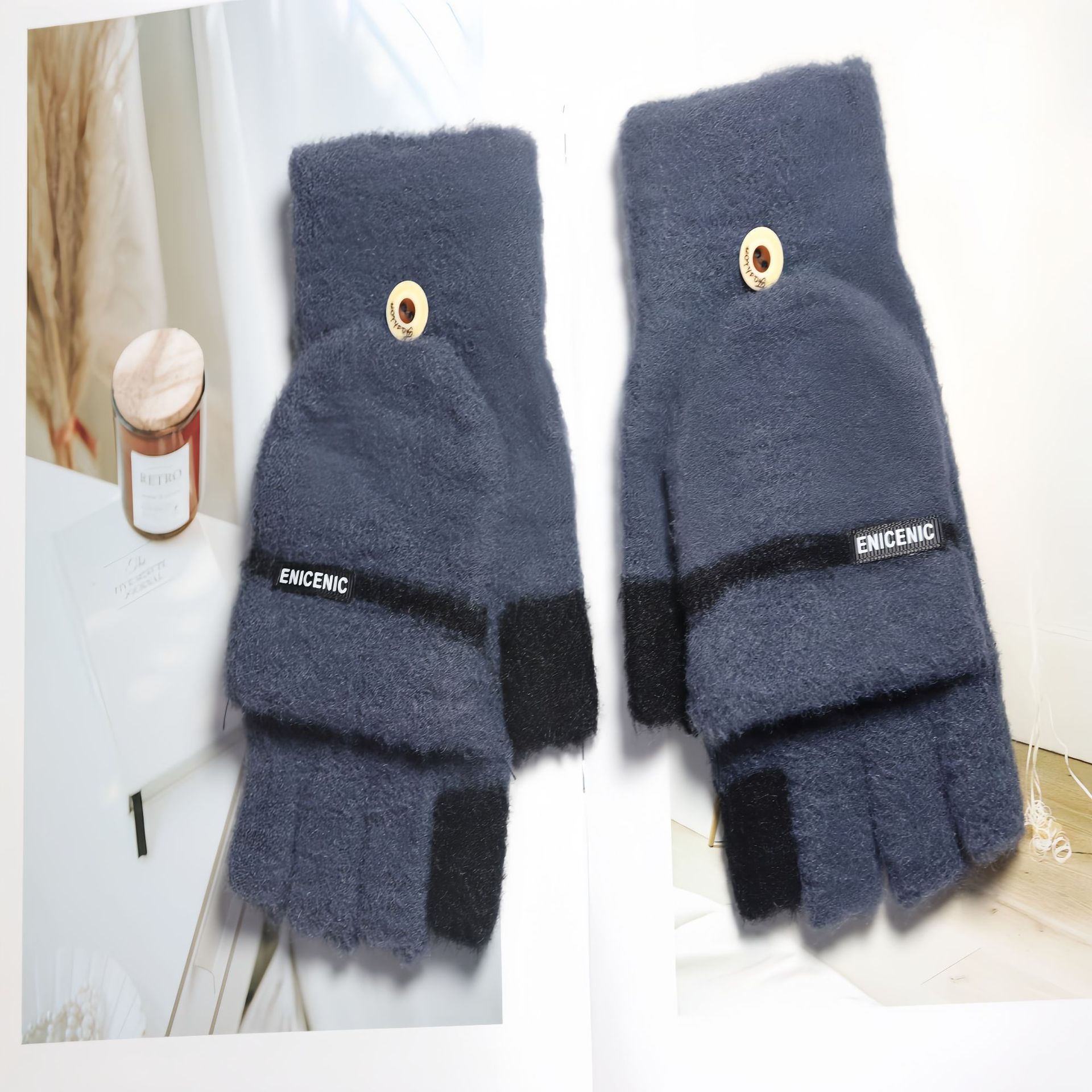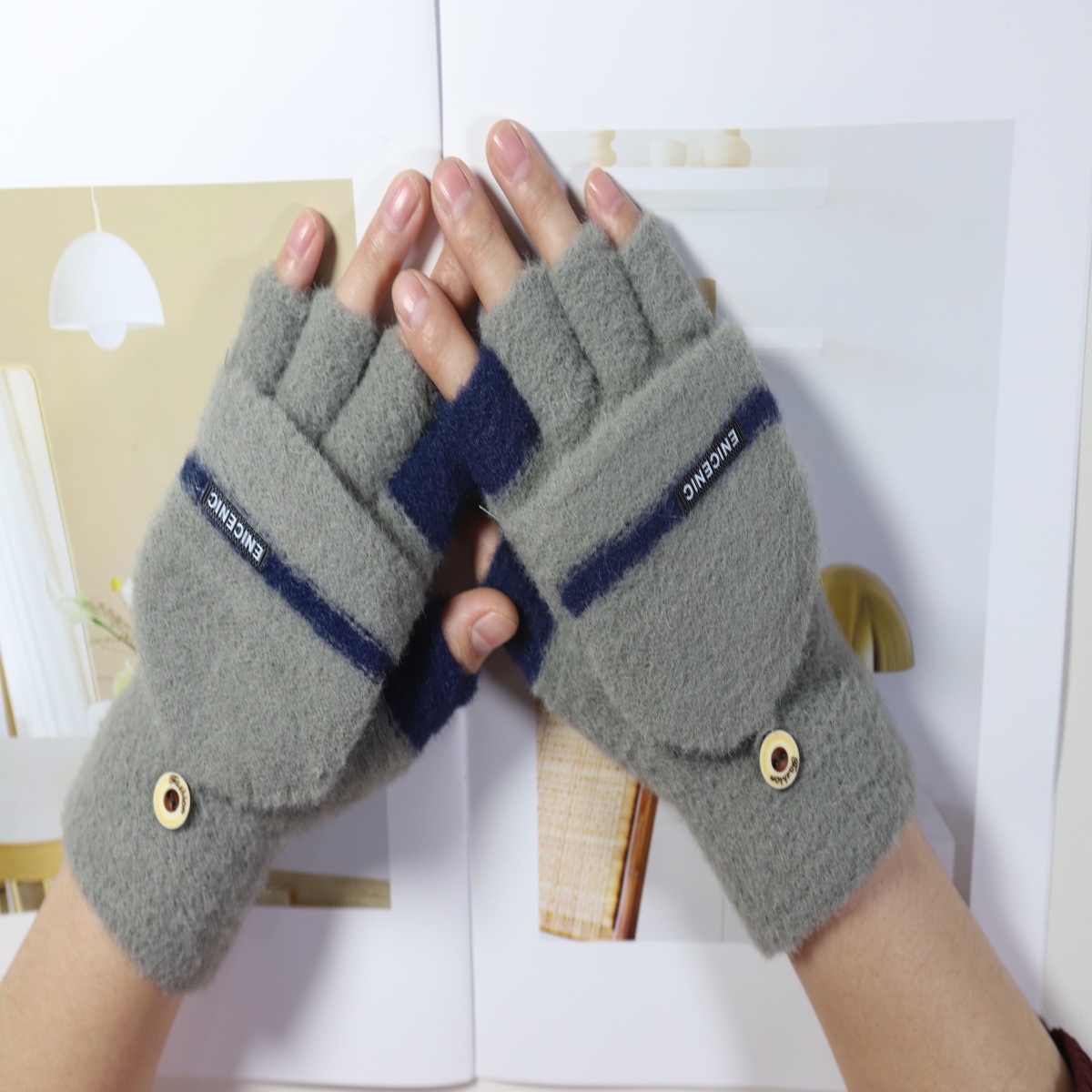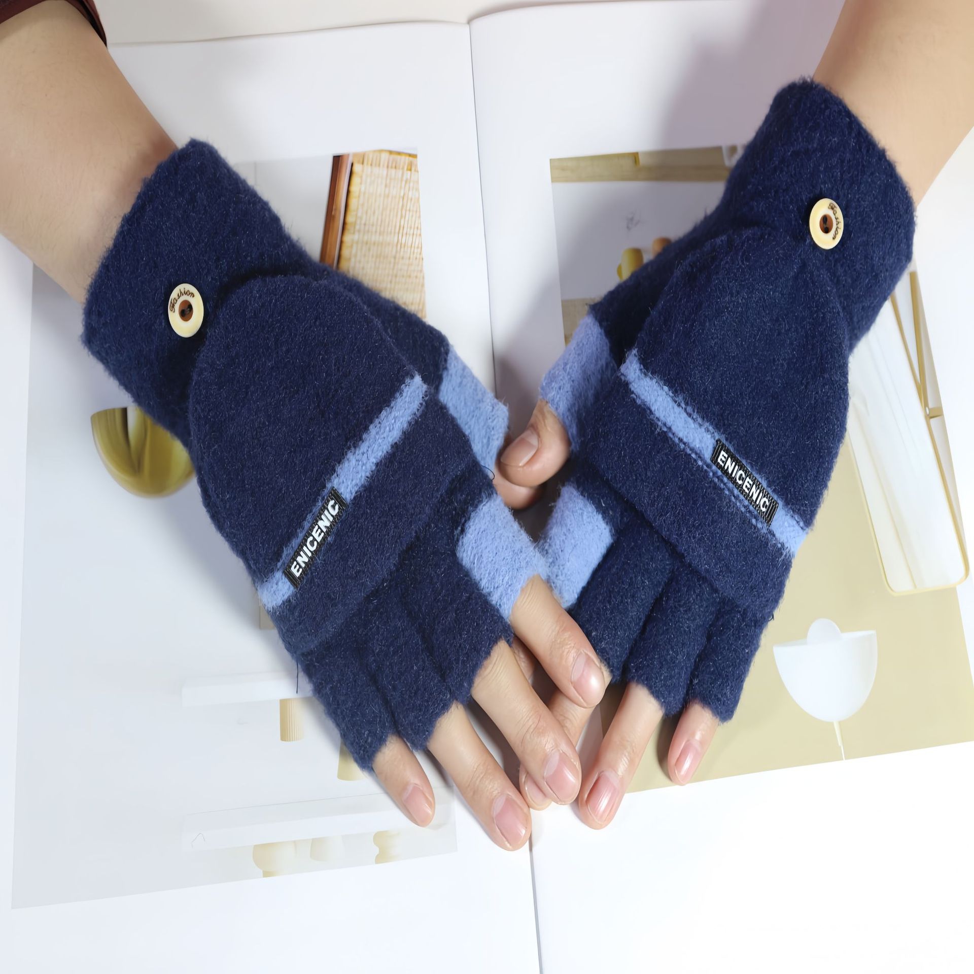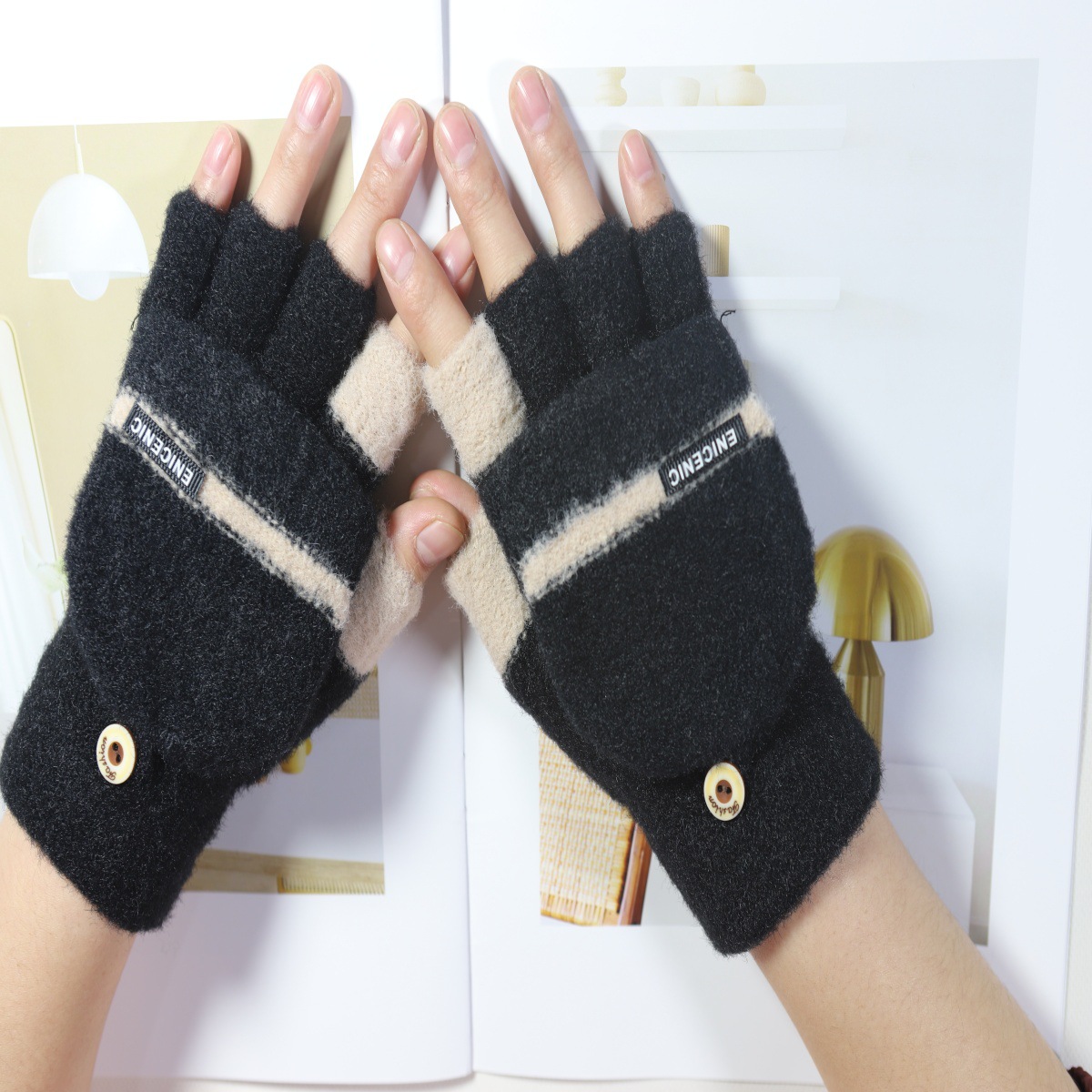겨울 새로운 니트 장갑 남성용 야외 방풍 터치 스크린 플립 커버 이중 목적 봉제 따뜻한 하프 핑거 장갑 한국 스타일 트렌디