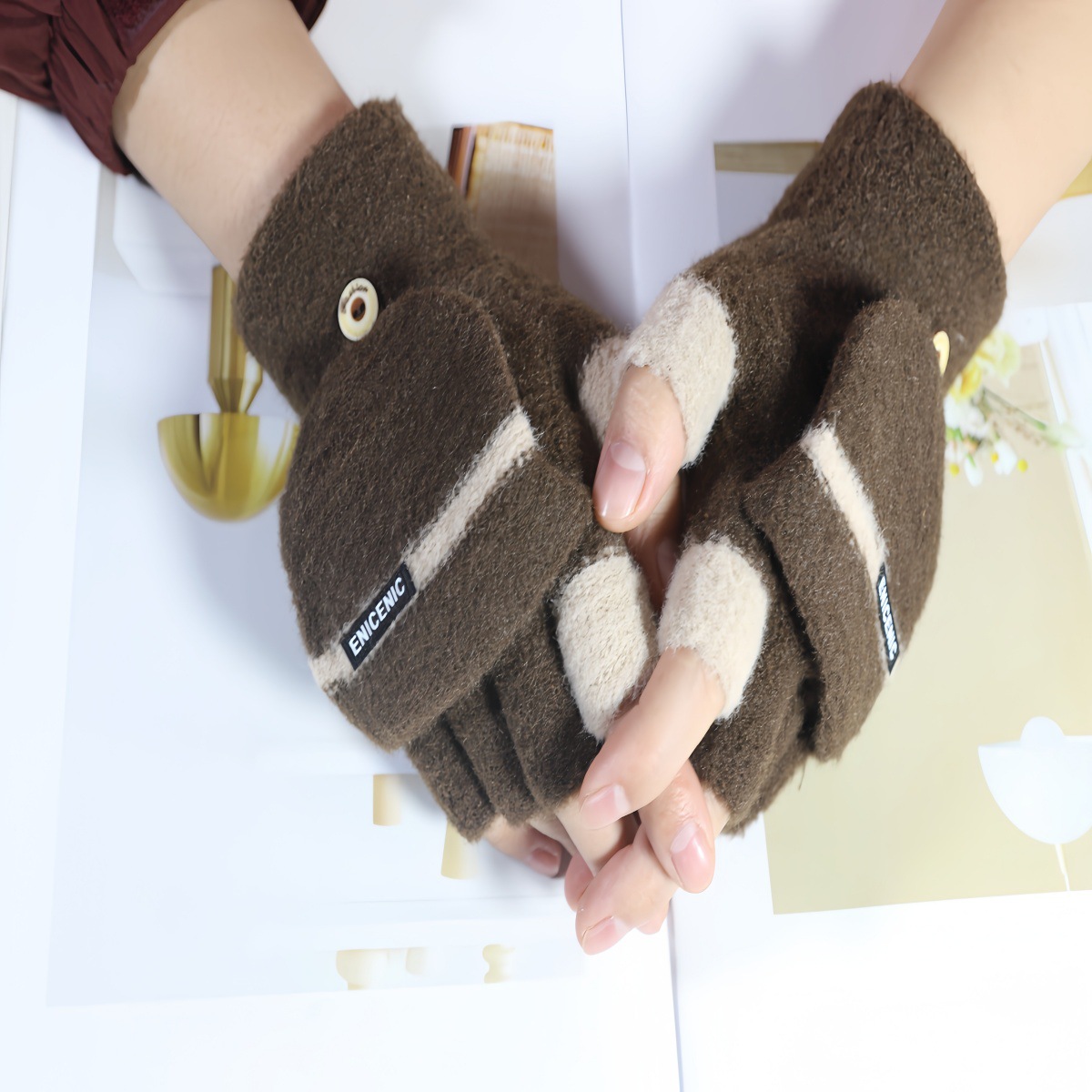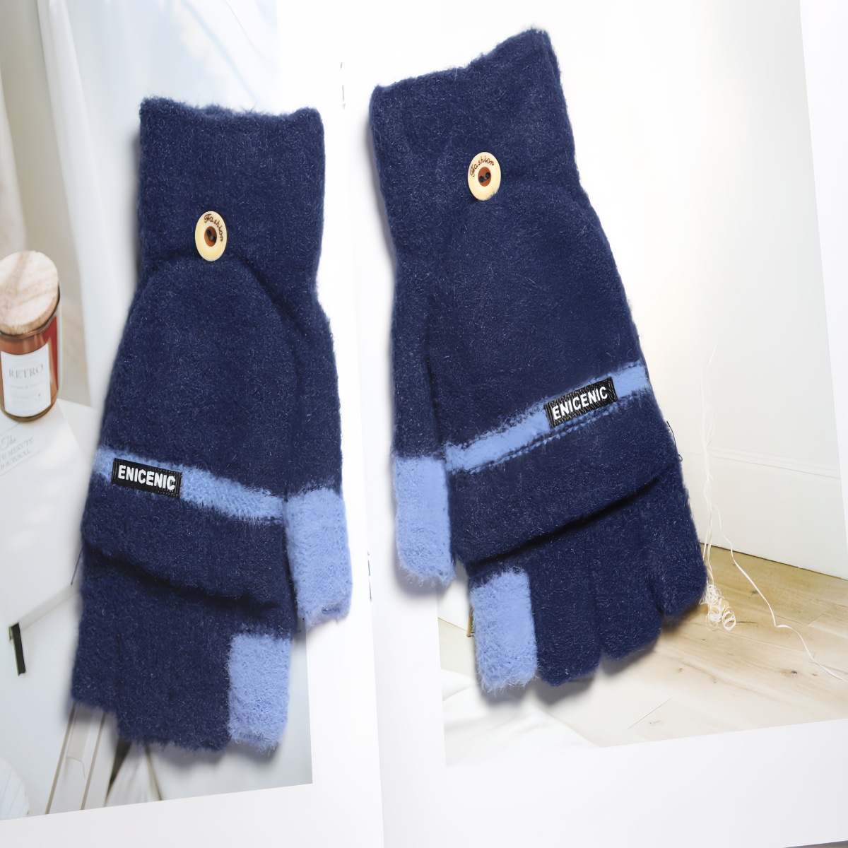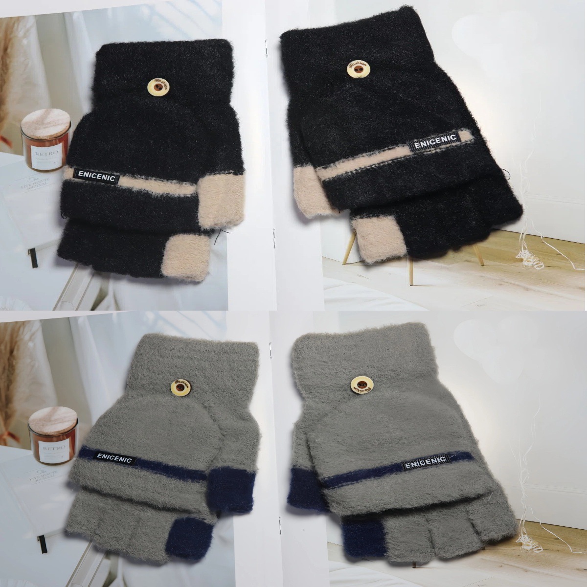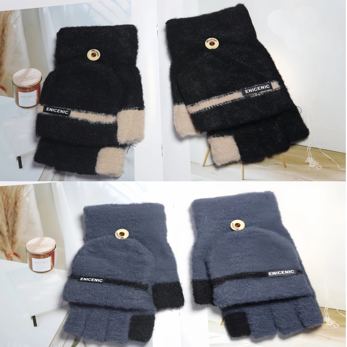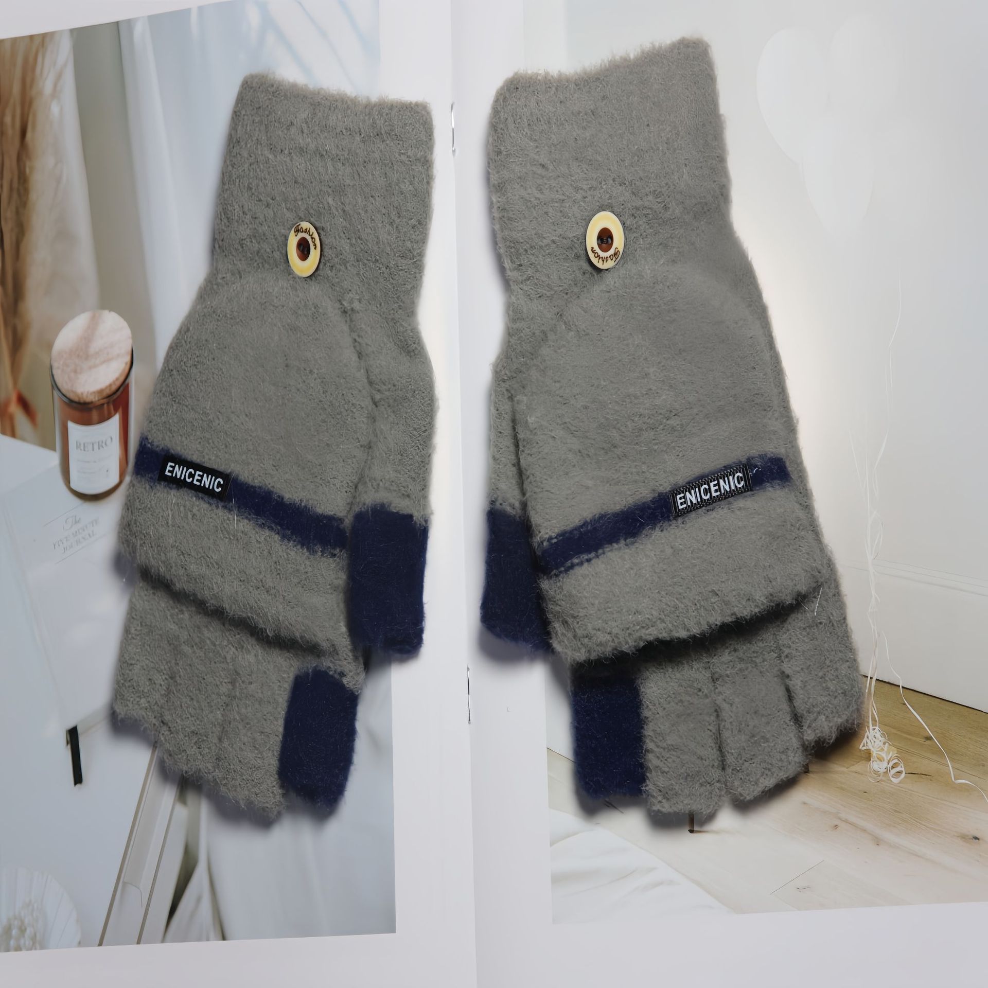 겨울 새로운 니트 장갑 남성용 야외 방풍 터치 스크린 플립 커버 이중 목적 봉제 따뜻한 하프 핑거 장갑 한국 스타일 트렌디