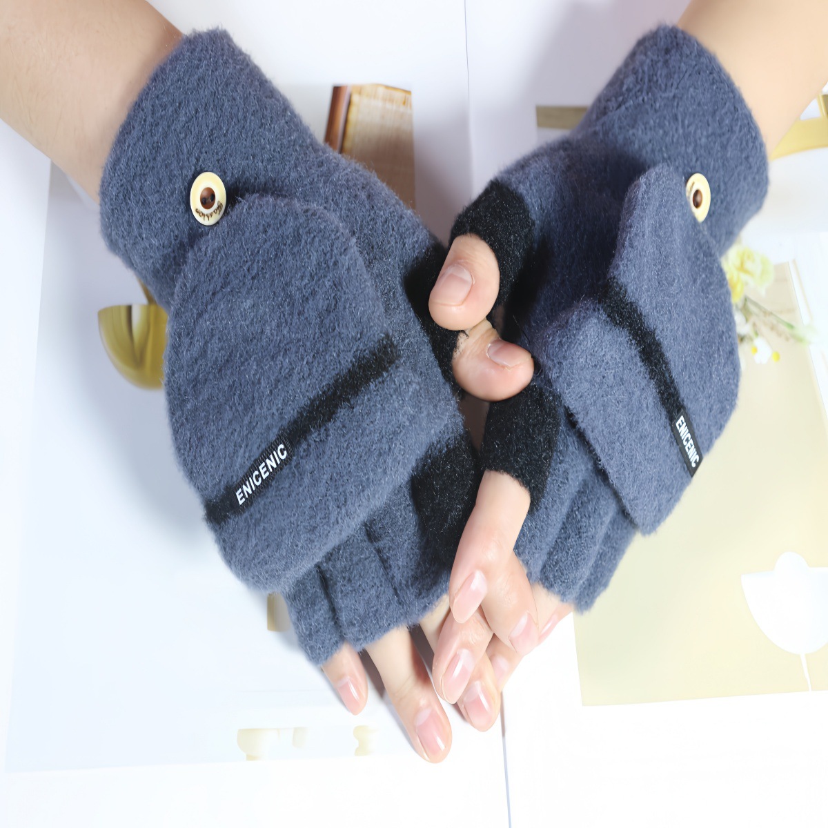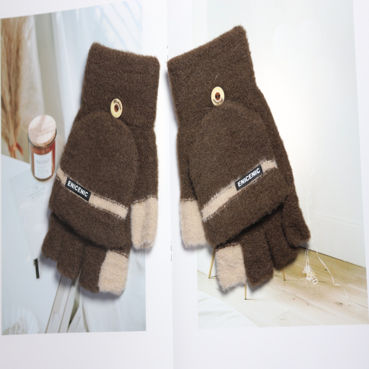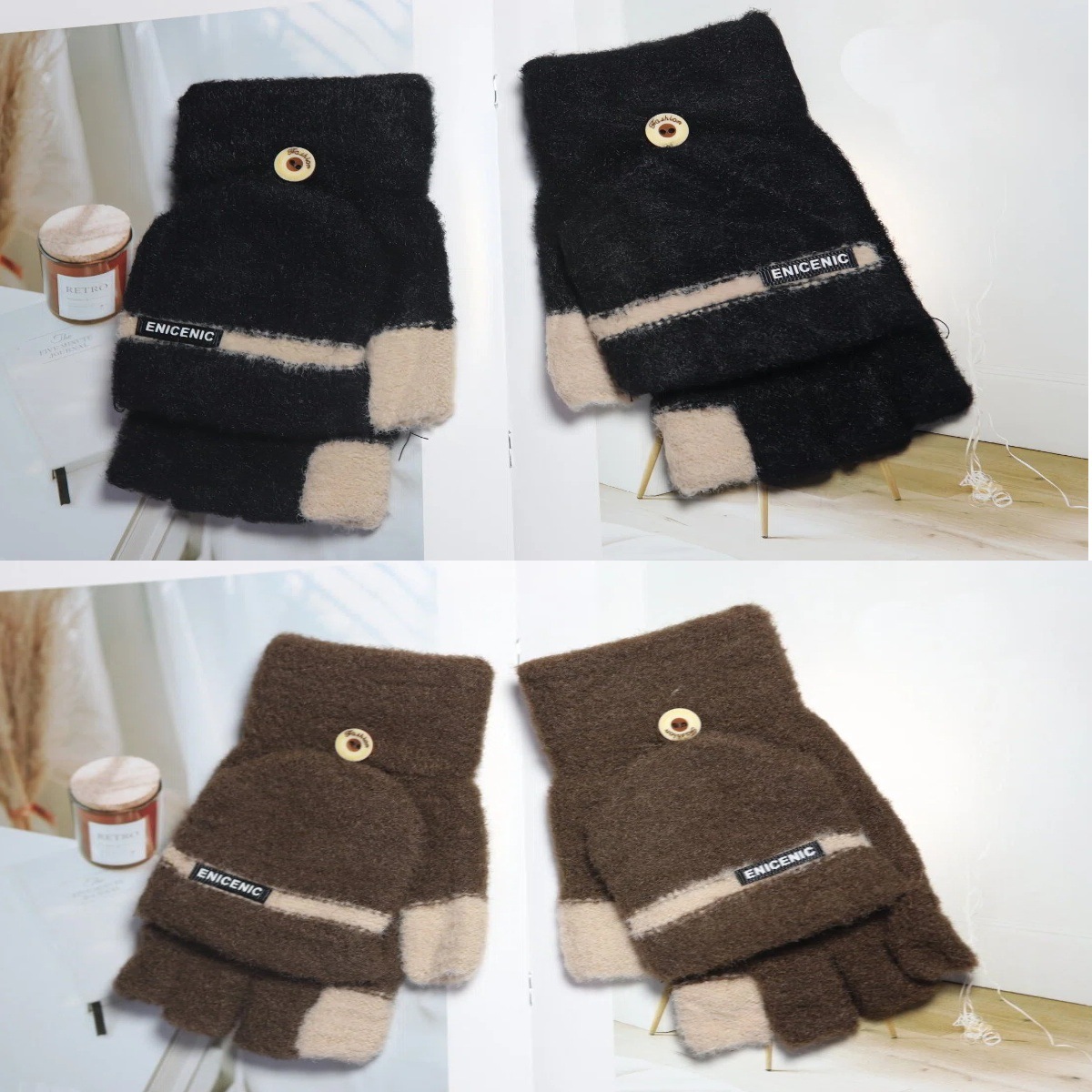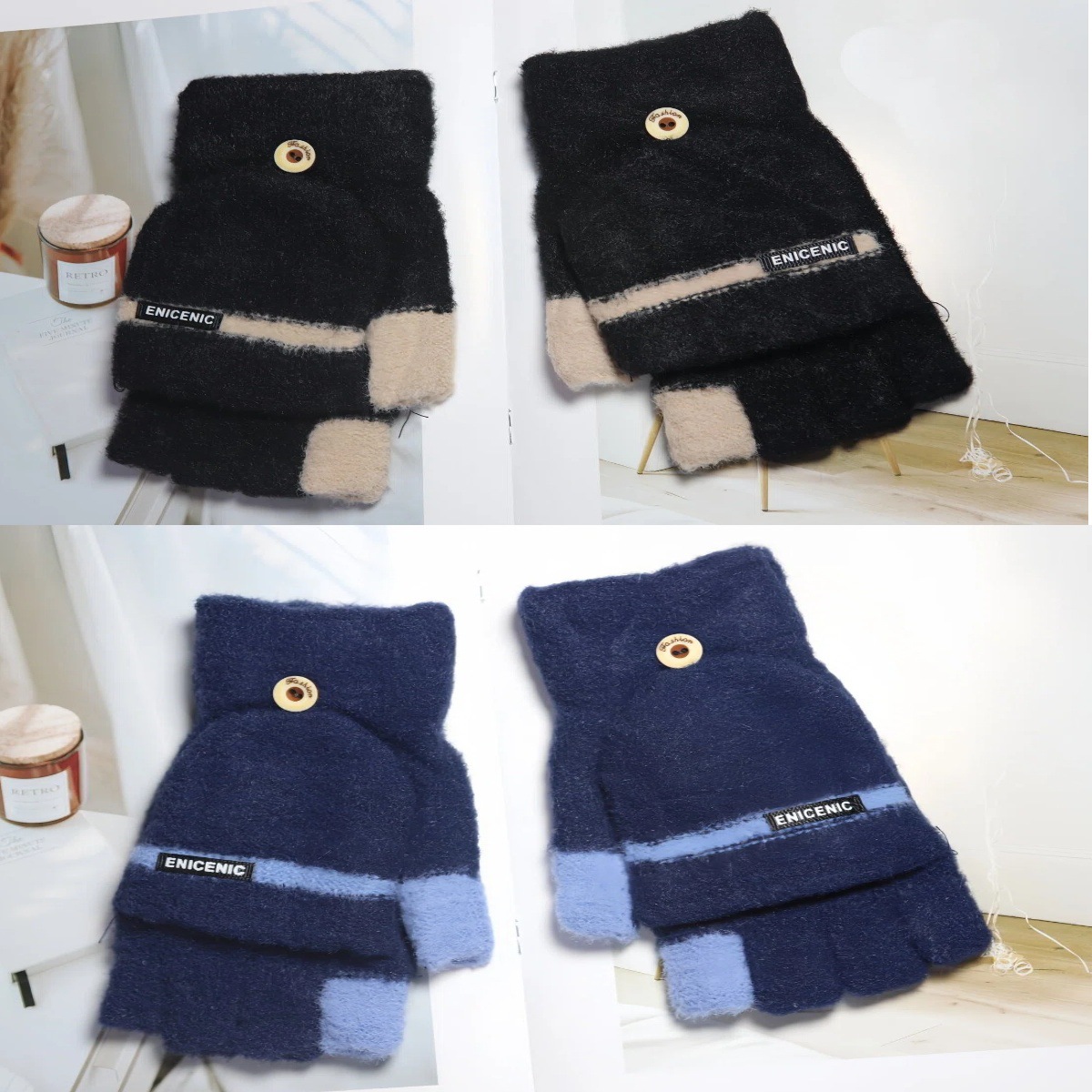 겨울 새로운 니트 장갑 남성용 야외 방풍 터치 스크린 플립 커버 이중 목적 봉제 따뜻한 하프 핑거 장갑 한국 스타일 트렌디