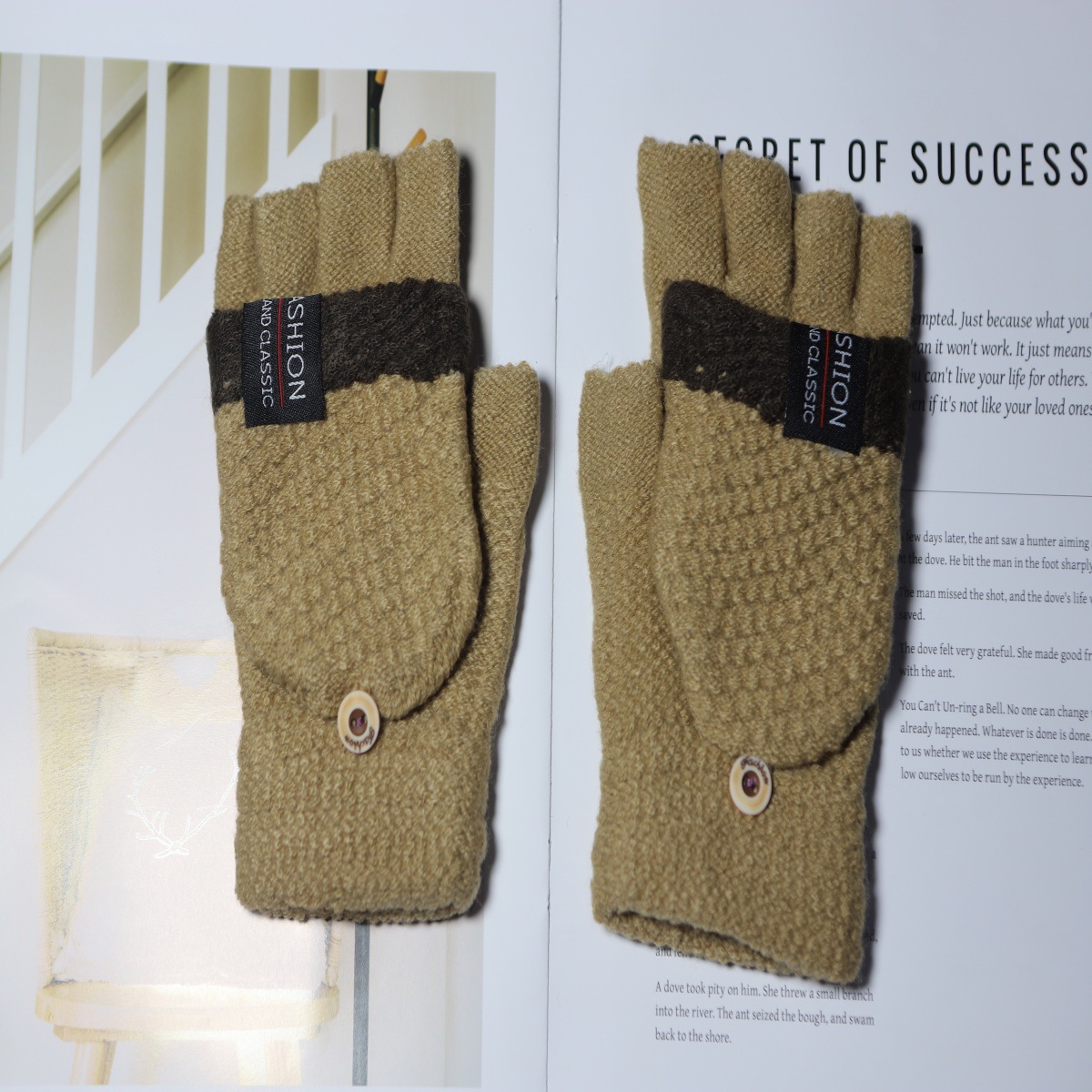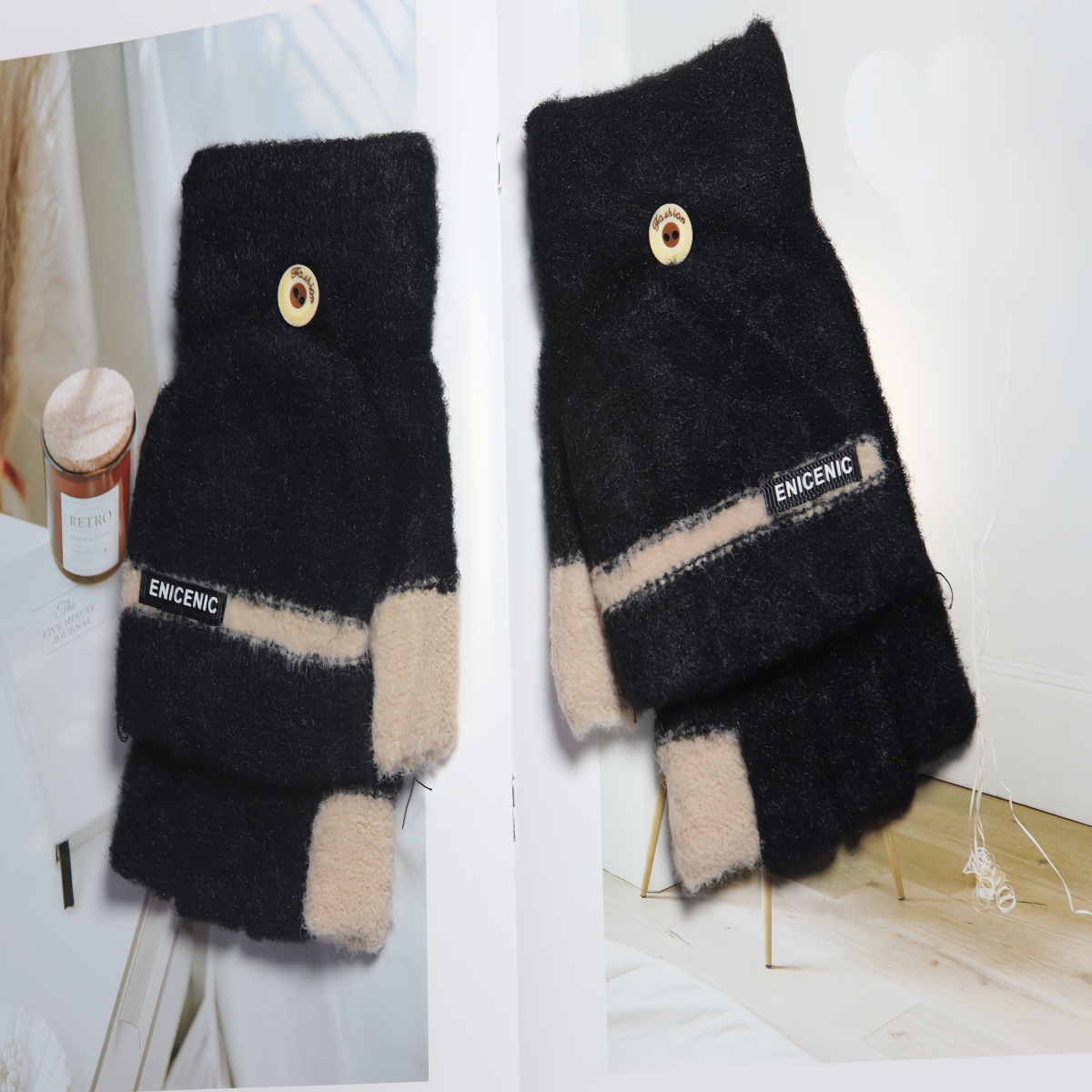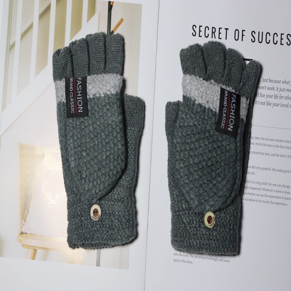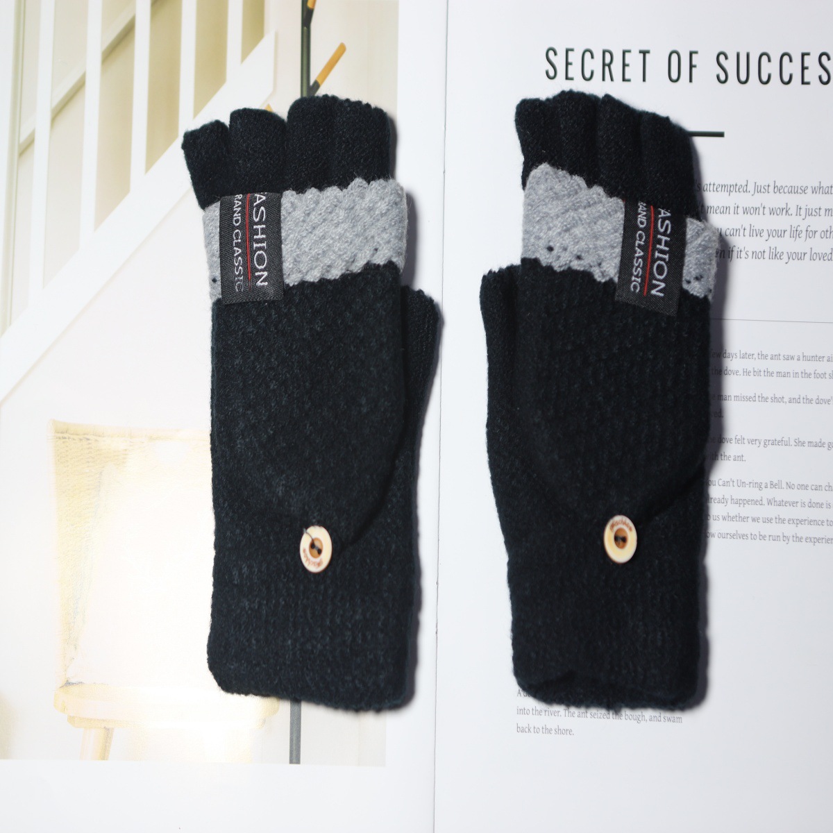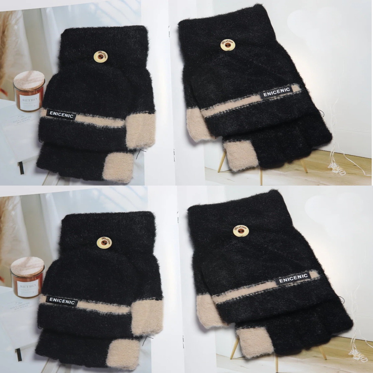 겨울 새로운 니트 장갑 남성용 야외 방풍 터치 스크린 플립 커버 이중 목적 봉제 따뜻한 하프 핑거 장갑 한국 스타일 트렌디